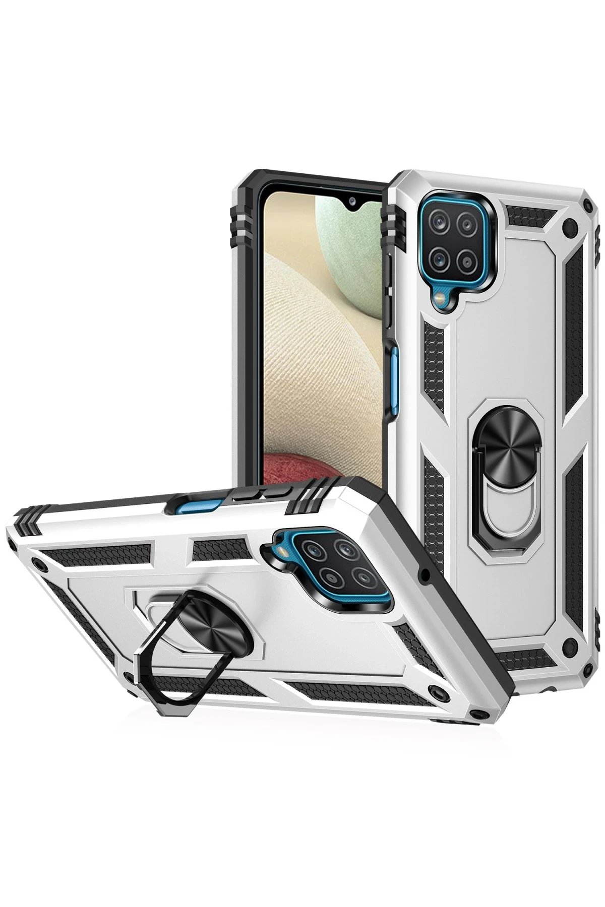 Samsung Galaxy A22 Kılıf Sofya Yüzüklü Silikon Kapak - Gümüş-(5796)