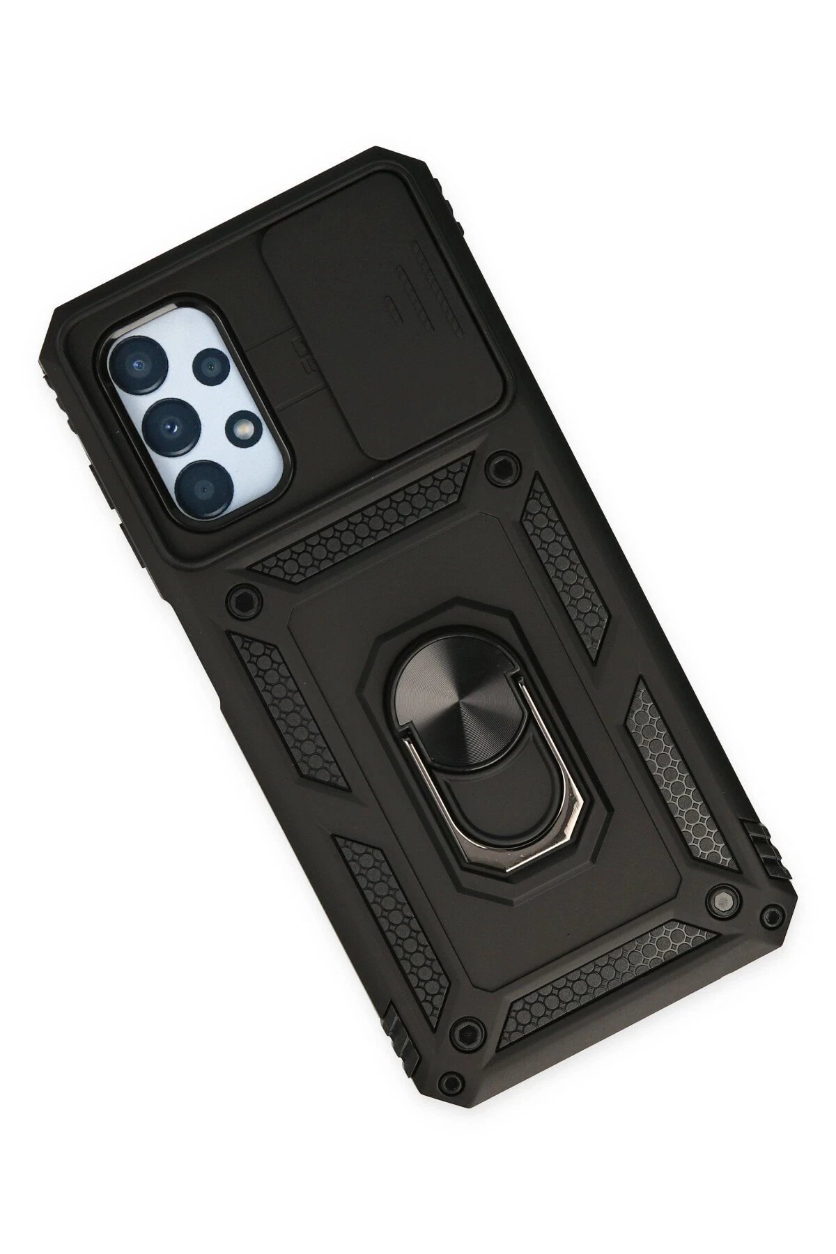 Samsung Galaxy A23 4G Kılıf Pars Lens Yüzüklü Silikon - Siyah-(5796)