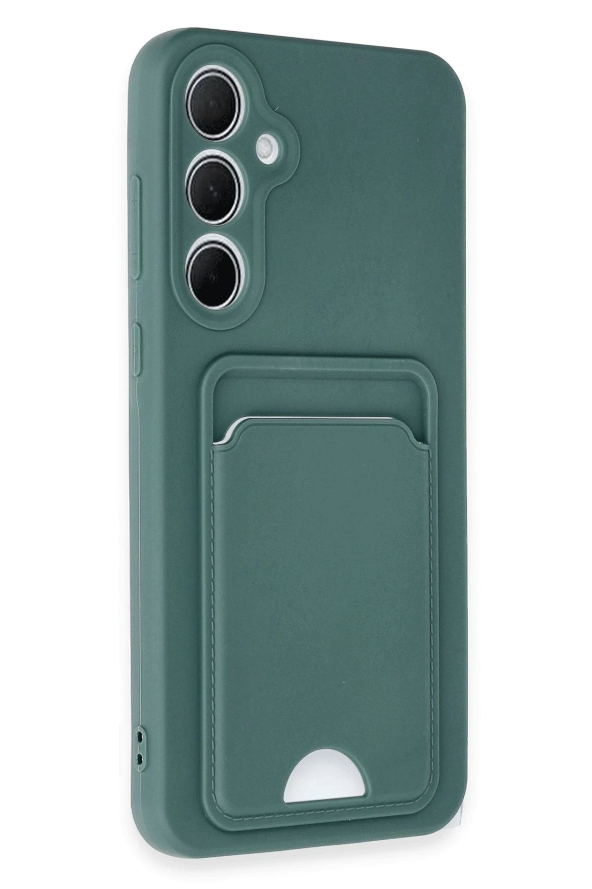 Samsung Galaxy A35 5G Kılıf Kelvin Kartvizitli Silikon - Koyu Yeşil-(5796)