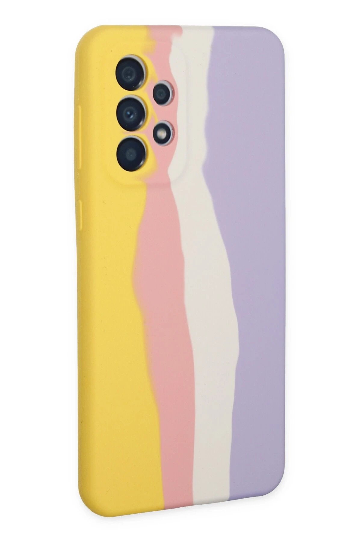 Samsung Galaxy A53 5G Kılıf Ebruli Lansman Silikon - Sarı-Mavi-(5796)