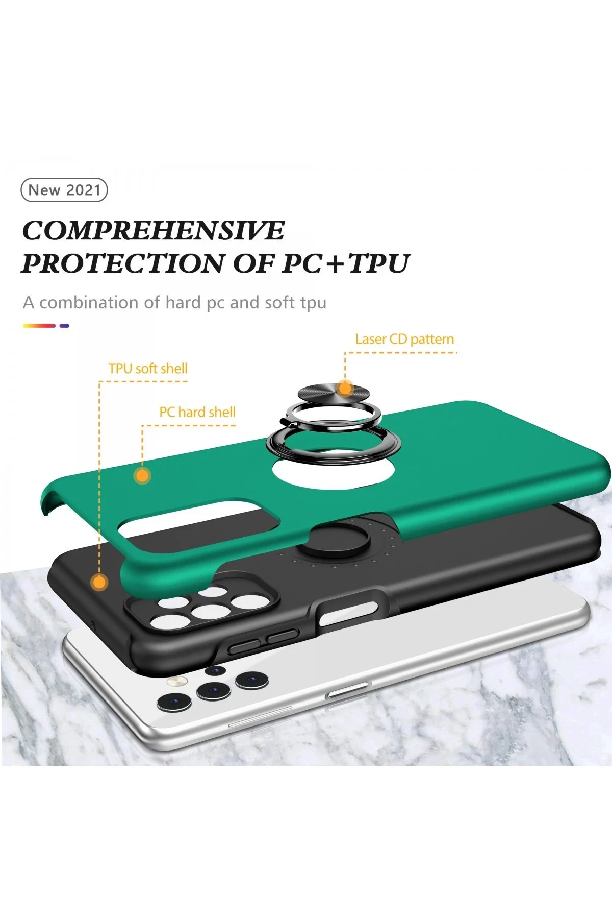 Samsung Galaxy A72 Kılıf Elit Yüzüklü Kapak - Yeşil-(5796)
