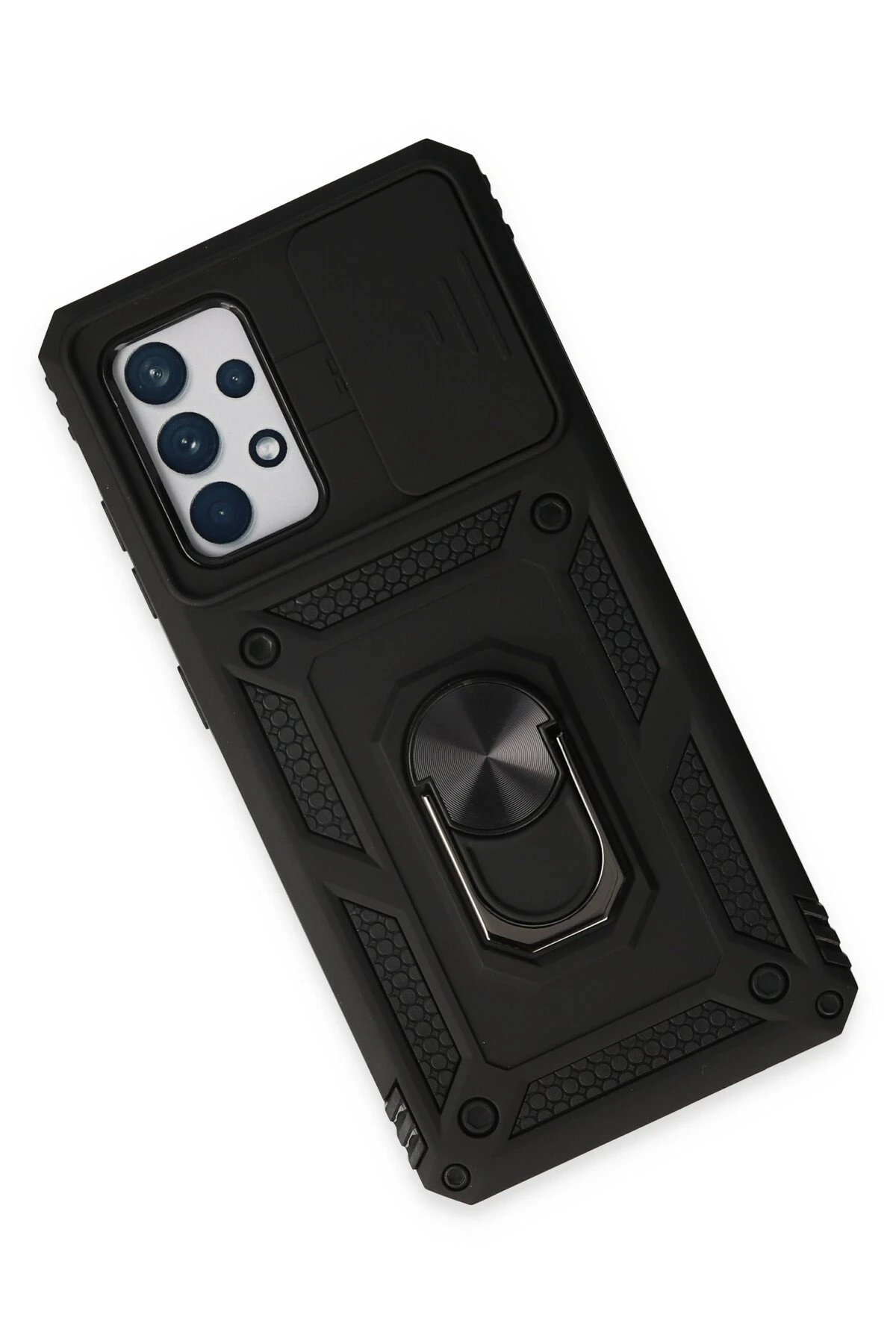 Samsung Galaxy A72 Kılıf Pars Lens Yüzüklü Silikon - Siyah-(5796)