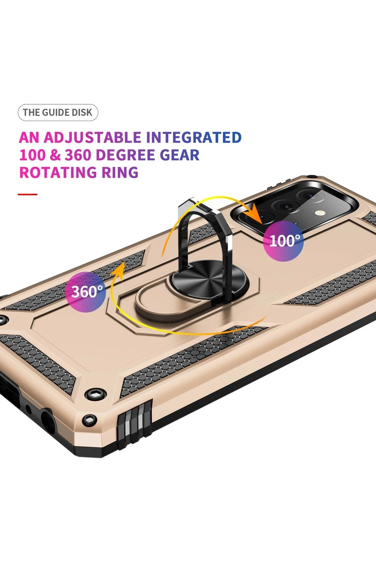 Samsung Galaxy A72 Kılıf Sofya Yüzüklü Silikon Kapak - Gold-(5796)