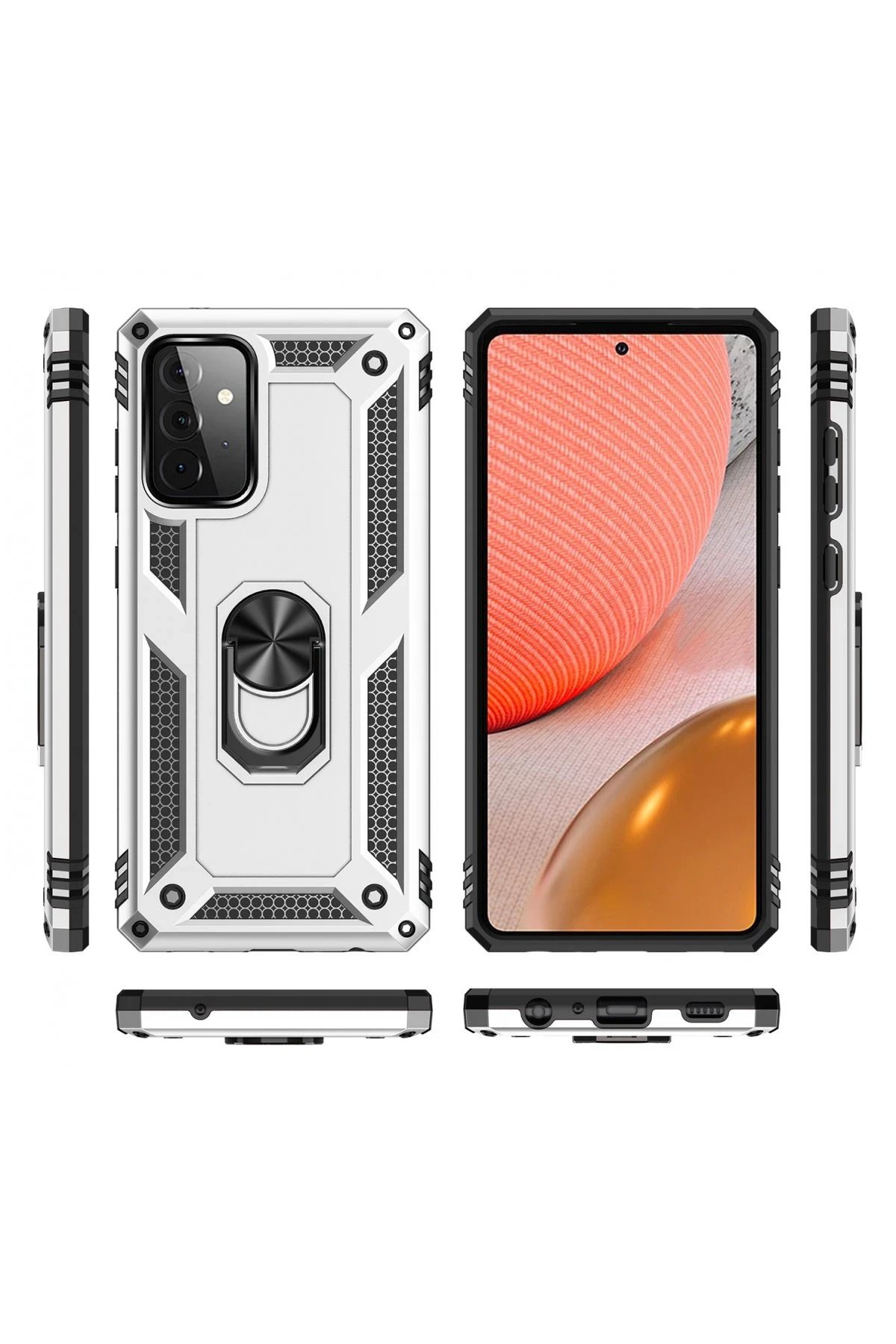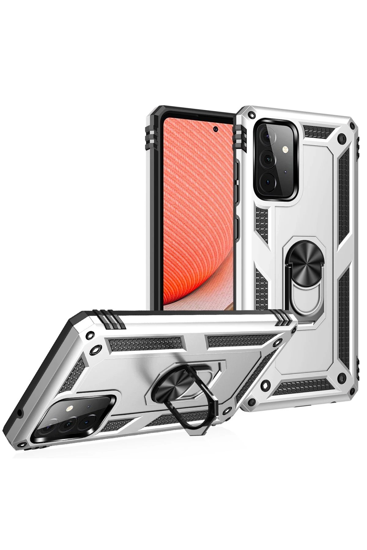 Samsung Galaxy A72 Kılıf Sofya Yüzüklü Silikon Kapak - Gümüş-(5796)