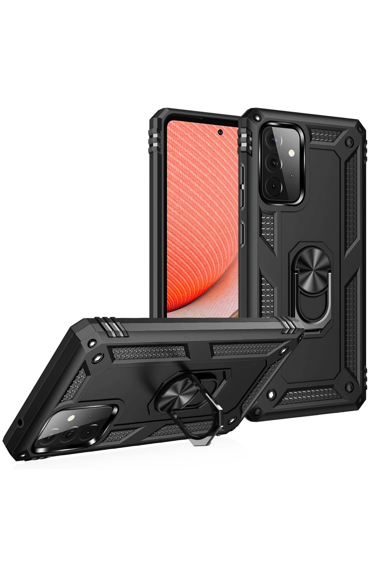 Samsung Galaxy A72 Kılıf Sofya Yüzüklü Silikon Kapak - Siyah-(5796)