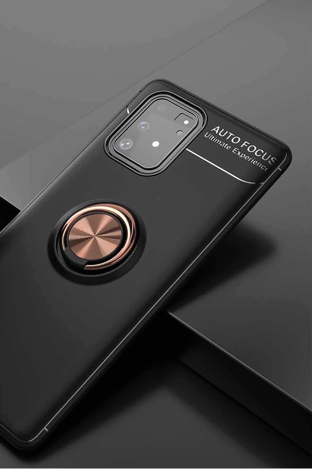 Samsung Galaxy A91 / S10 Lite Kılıf Range Yüzüklü Silikon - Siyah-Gold-(5796)