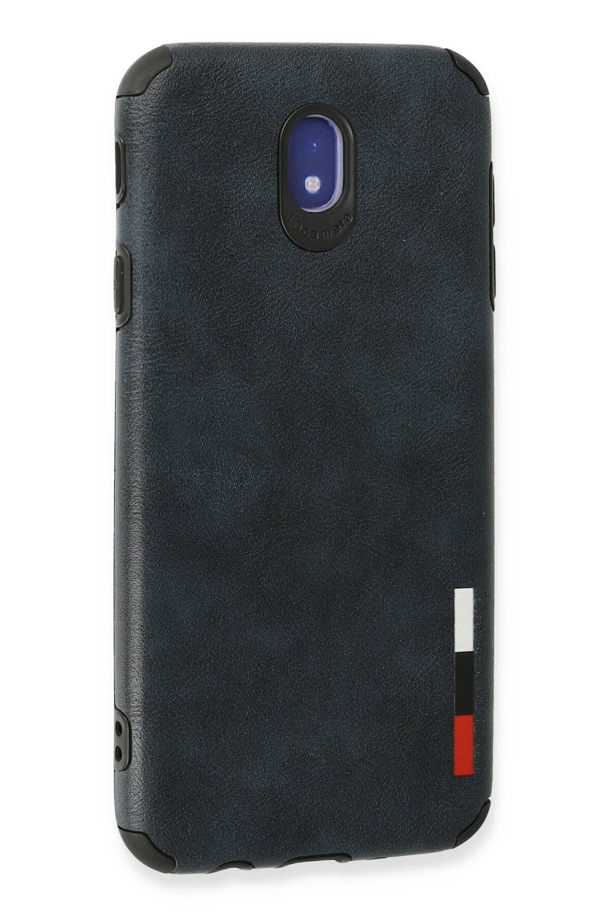 Samsung Galaxy J7 Pro / J730 Kılıf Loop Deri Silikon - Lacivert-(5796)