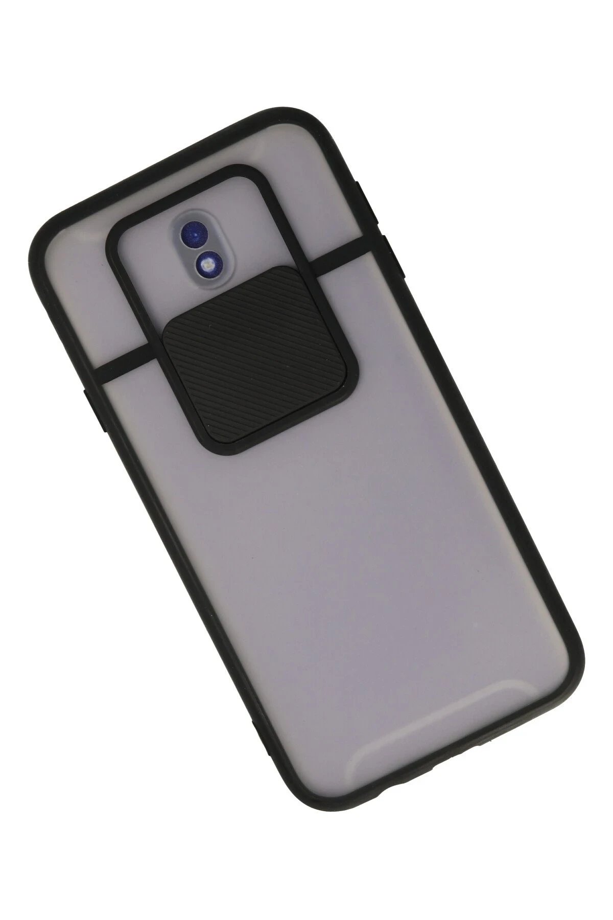 Samsung Galaxy J7 Pro / J730 Kılıf Palm Buzlu Kamera Sürgülü Silikon - Siyah-(5796)