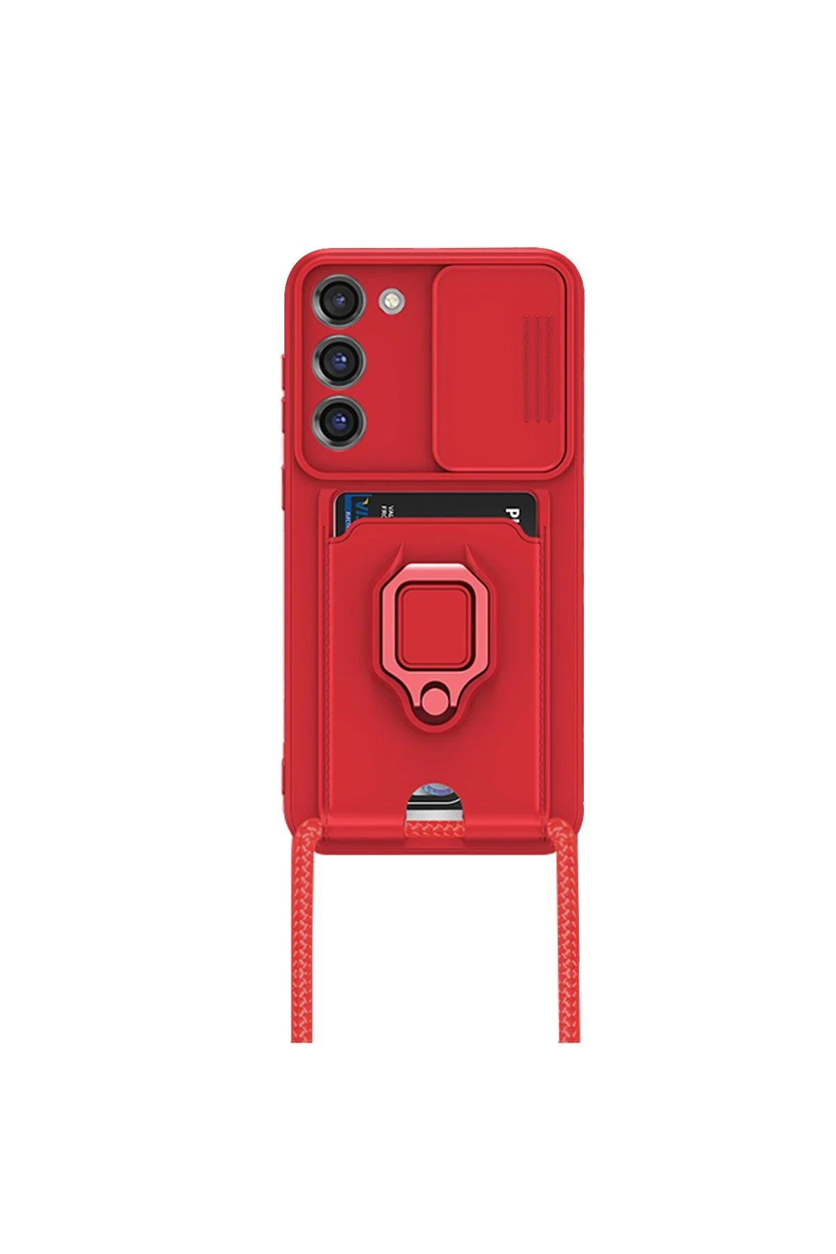 Samsung Galaxy M34 5G Kılıf Zuma Kartvizitli Yüzüklü Silikon - Kırmızı-(5796)