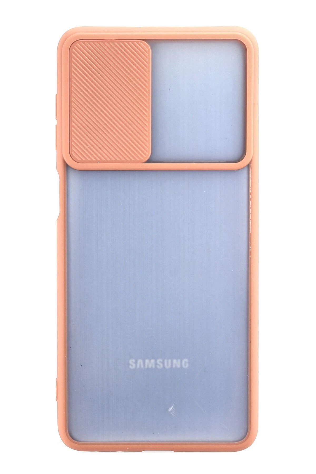 Samsung Galaxy M52 5G Kılıf Palm Buzlu Kamera Sürgülü Silikon - Pembe-(5796)