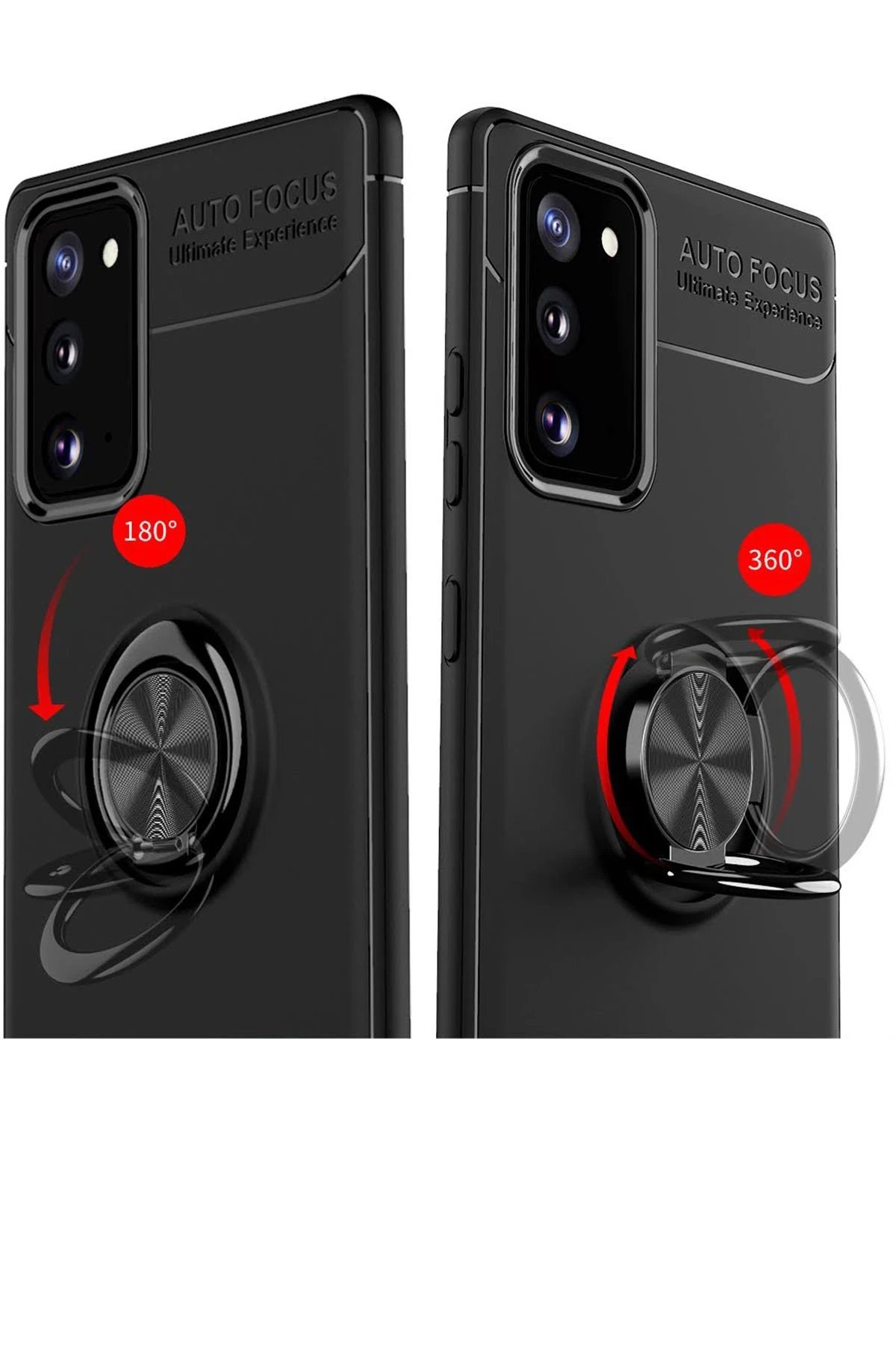Samsung Galaxy Note 20 Kılıf Range Yüzüklü Silikon - Siyah-Gold-(5796)