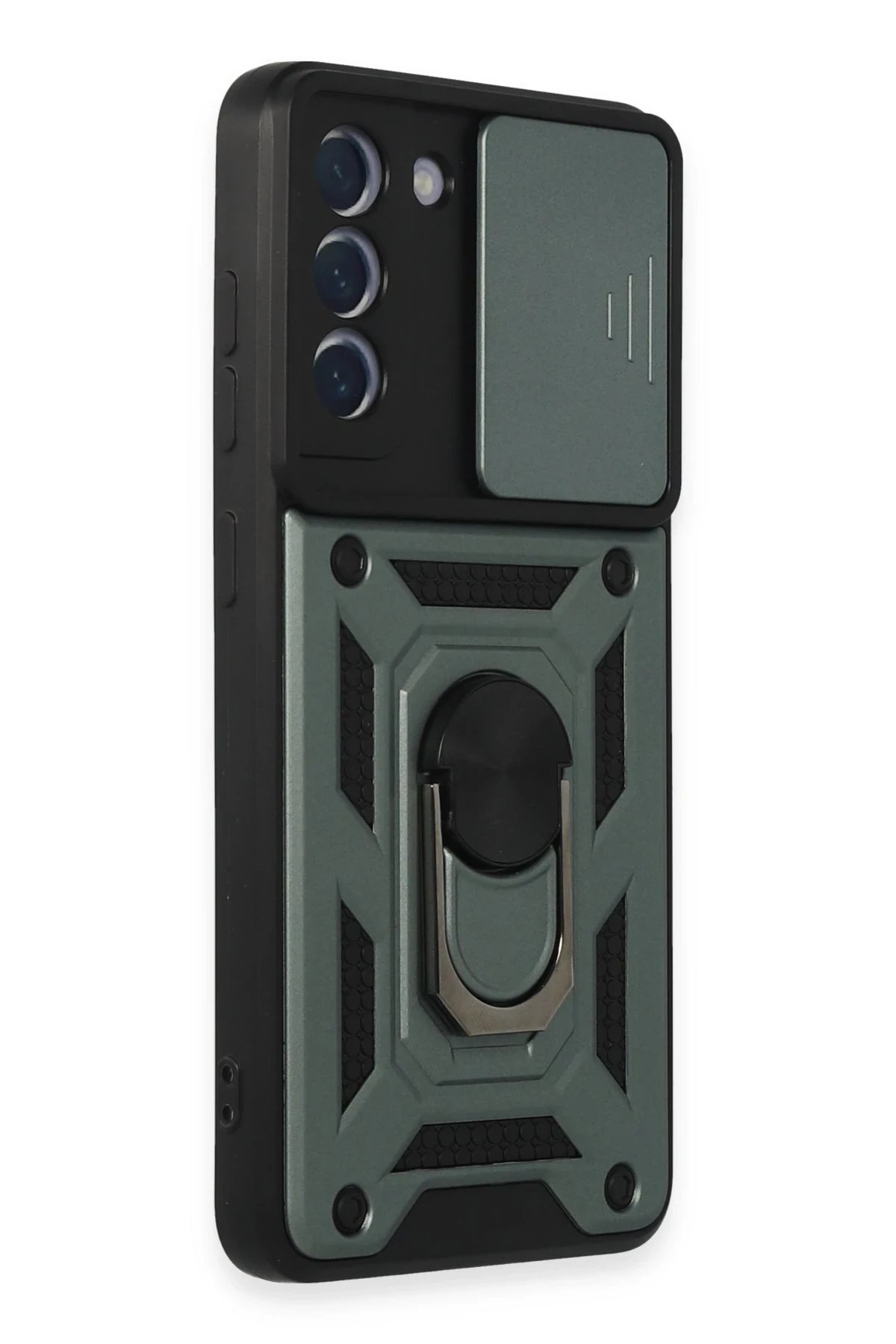 Samsung Galaxy S21 FE Kılıf Pars Lens Yüzüklü Silikon - Yeşil-(5796)