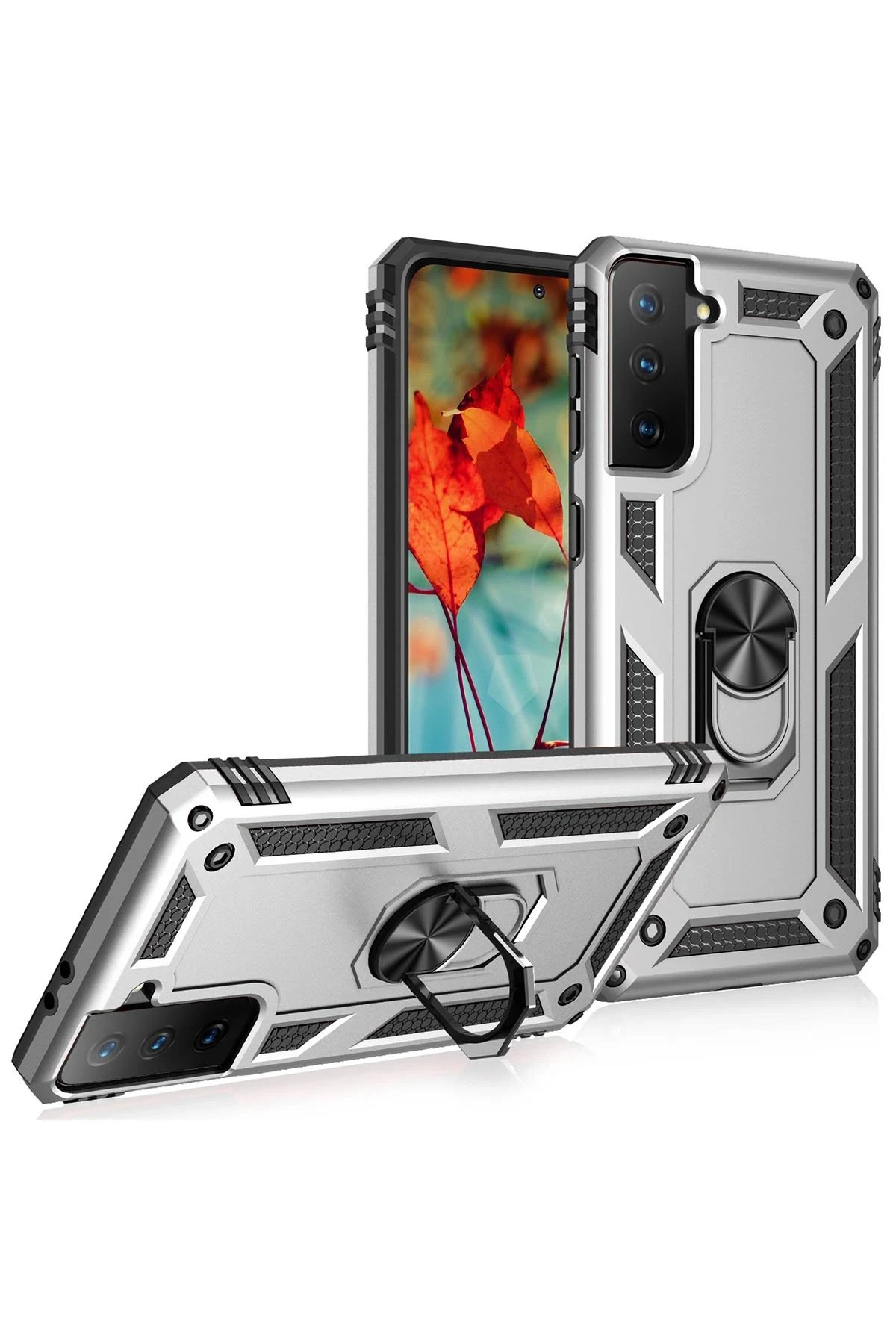 Samsung Galaxy S21 Plus Kılıf Sofya Yüzüklü Silikon Kapak - Gümüş-(5796)
