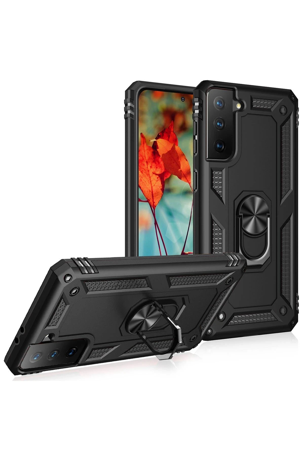 Samsung Galaxy S21 Plus Kılıf Sofya Yüzüklü Silikon Kapak - Siyah-(5796)