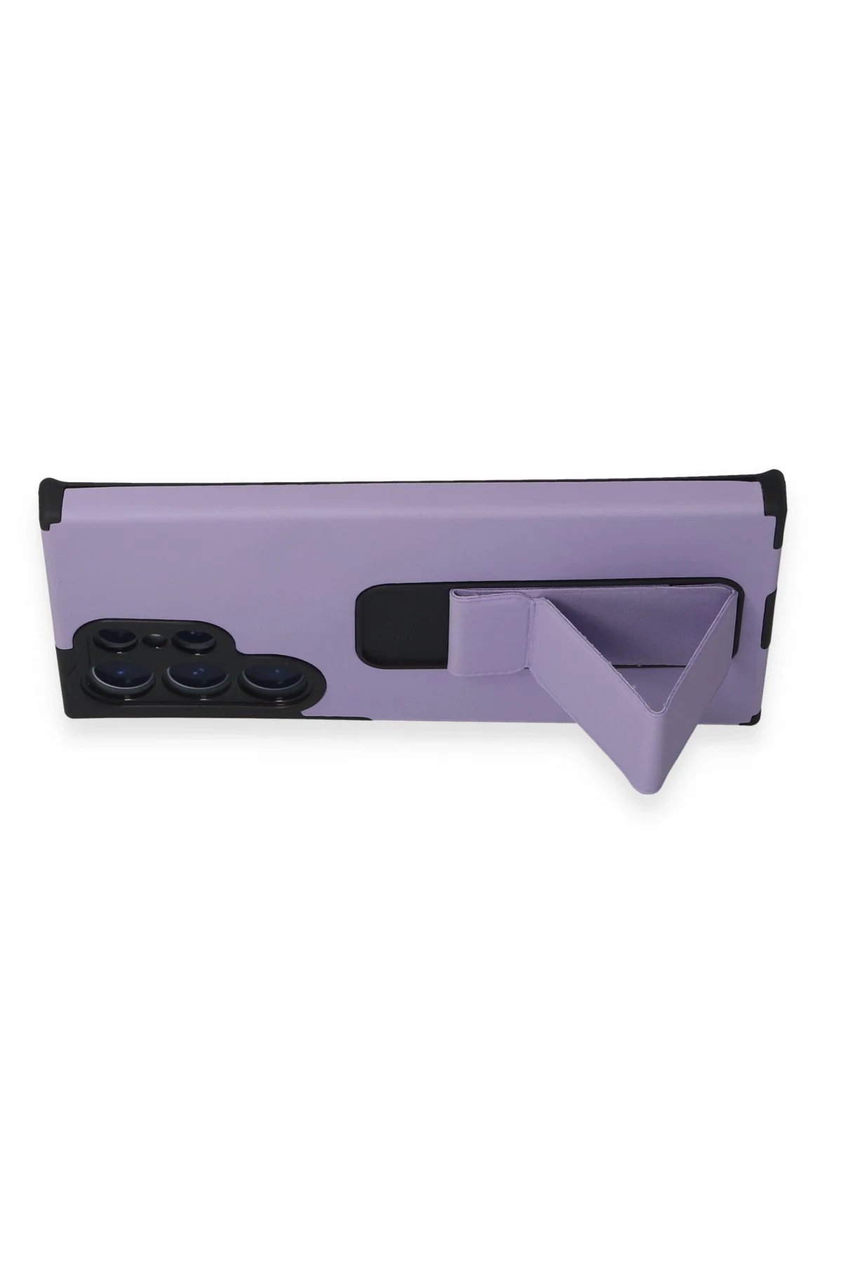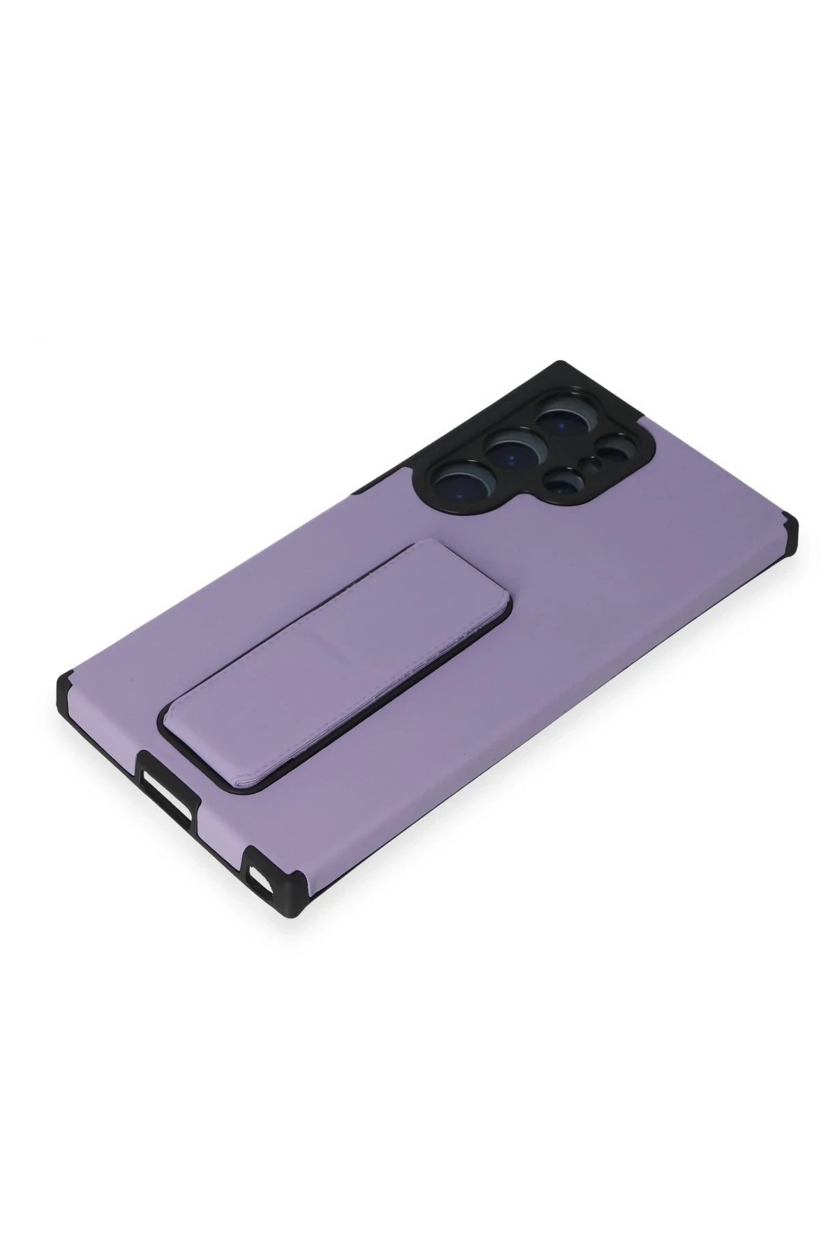 Samsung Galaxy S23 Ultra Kılıf Mega Standlı Silikon - Lila-(5796)