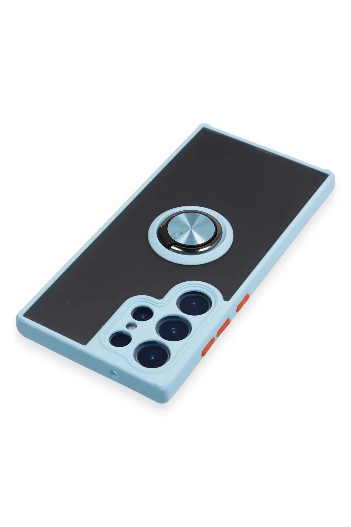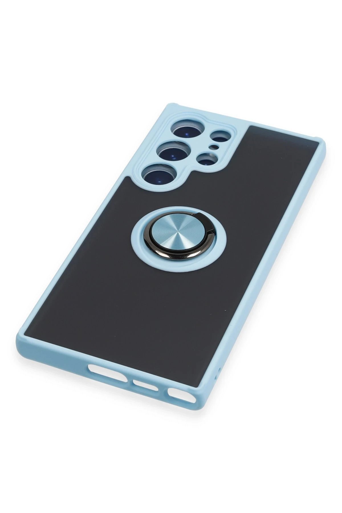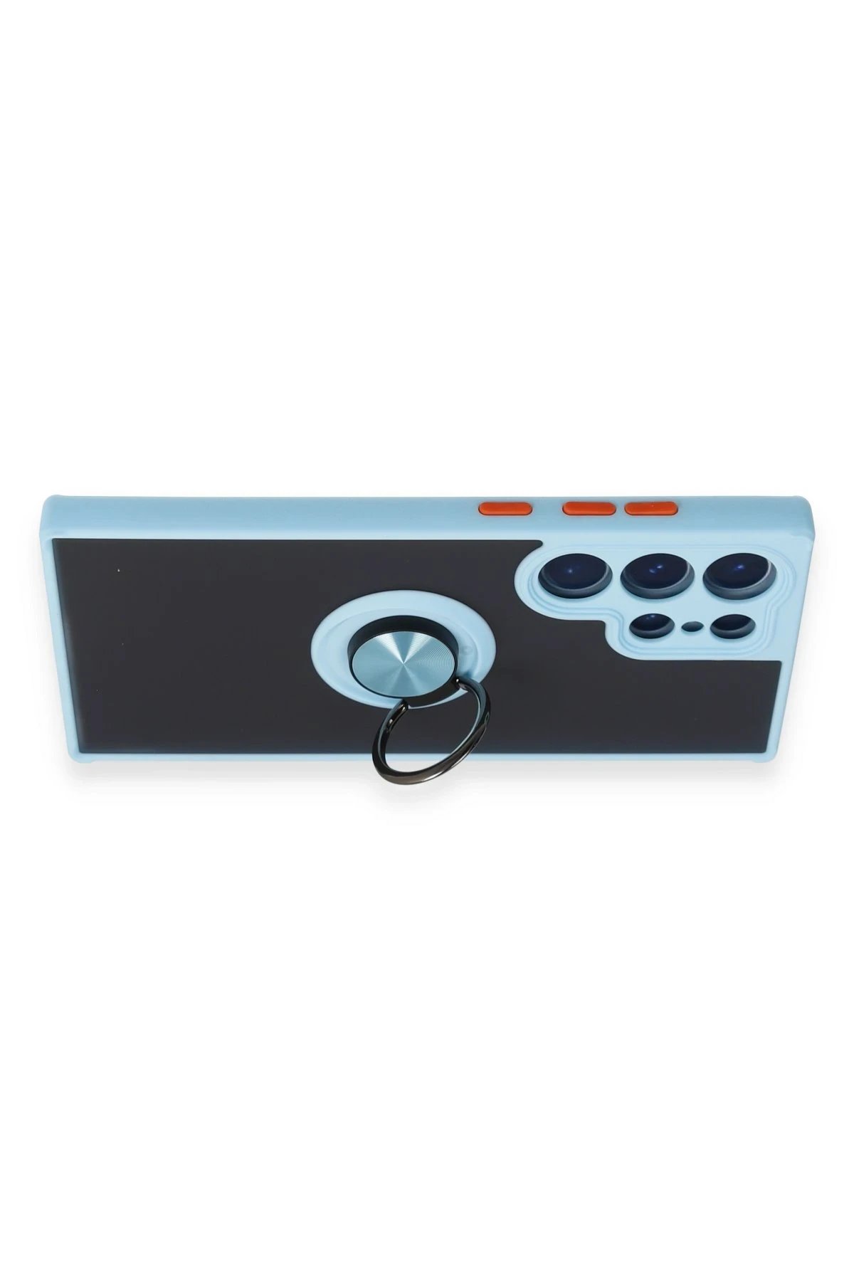 Samsung Galaxy S23 Ultra Kılıf Montreal Yüzüklü Silikon Kapak - Buz Mavi-(5796)