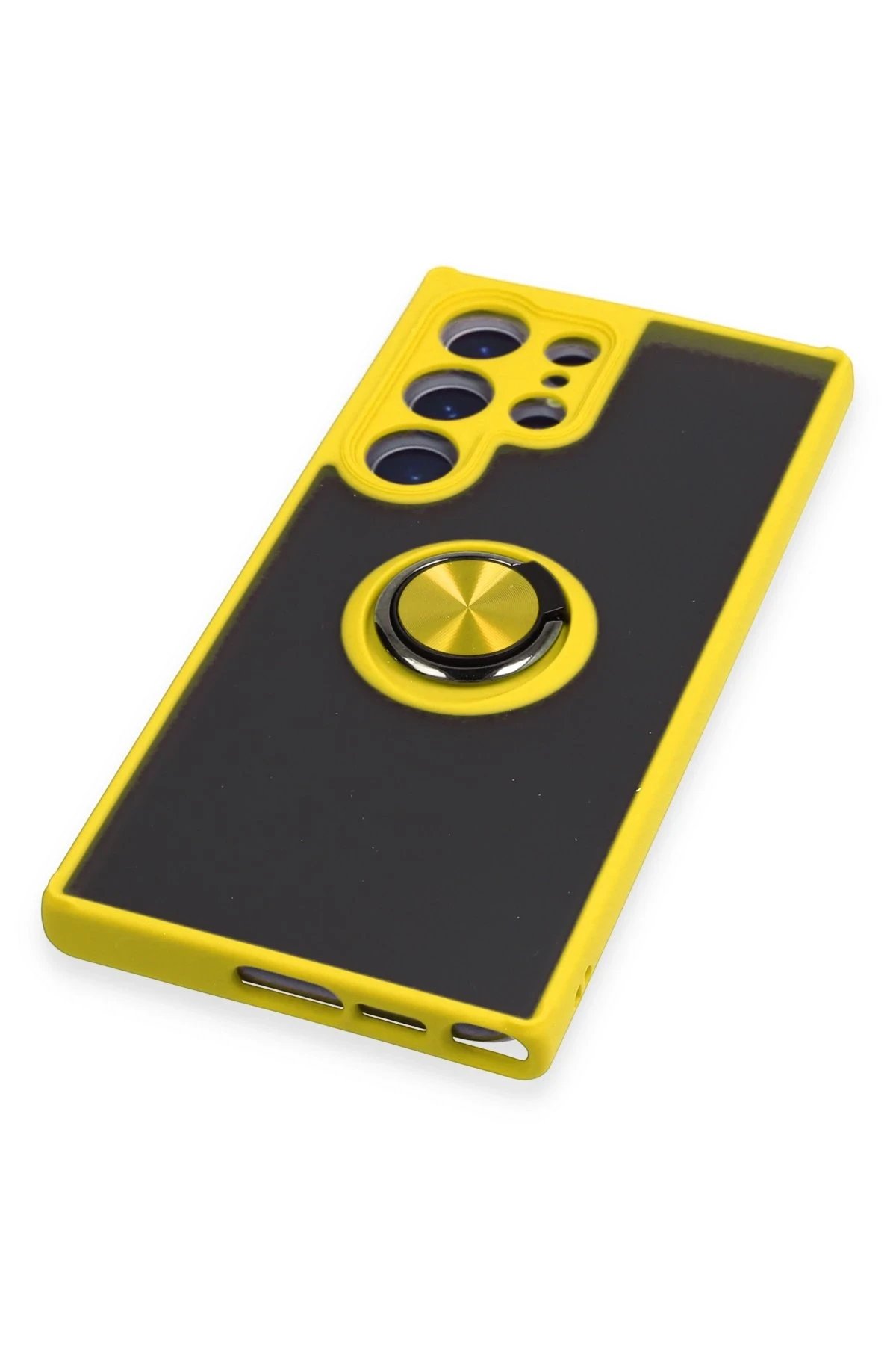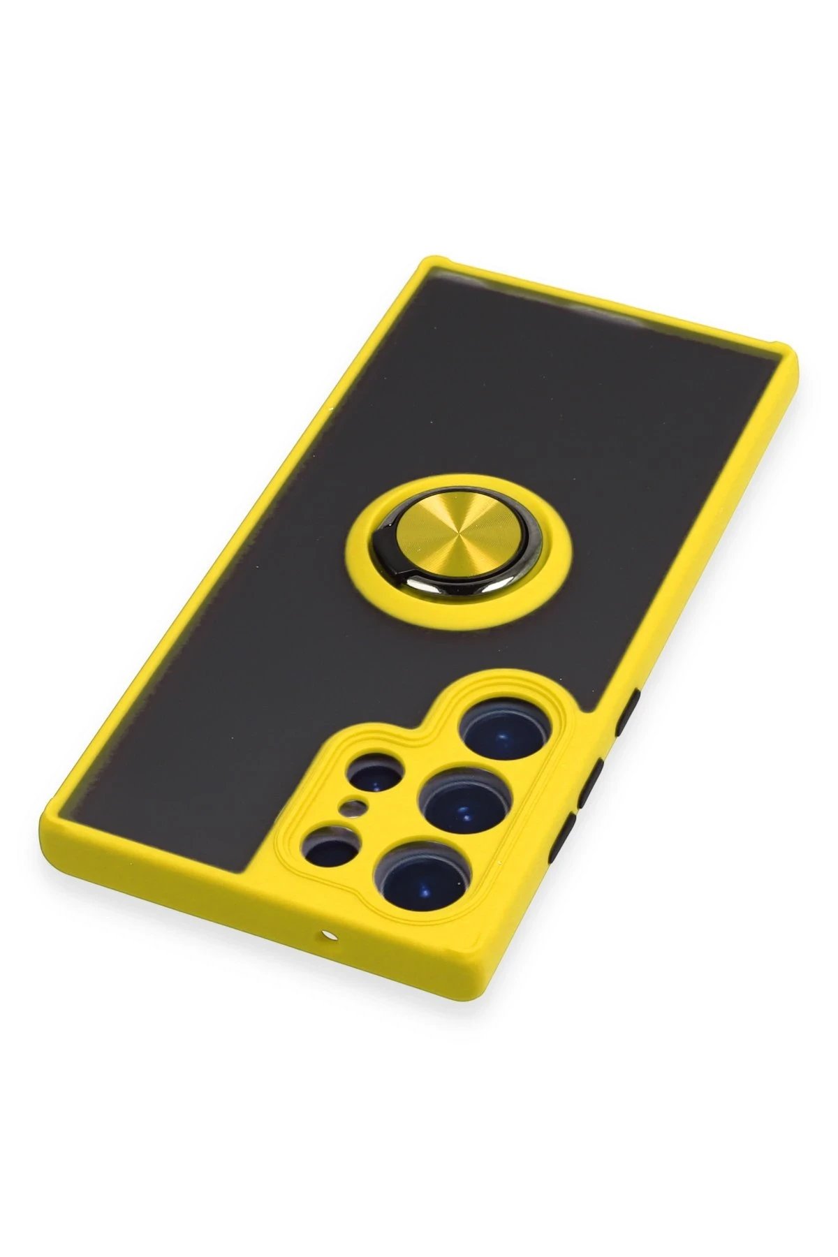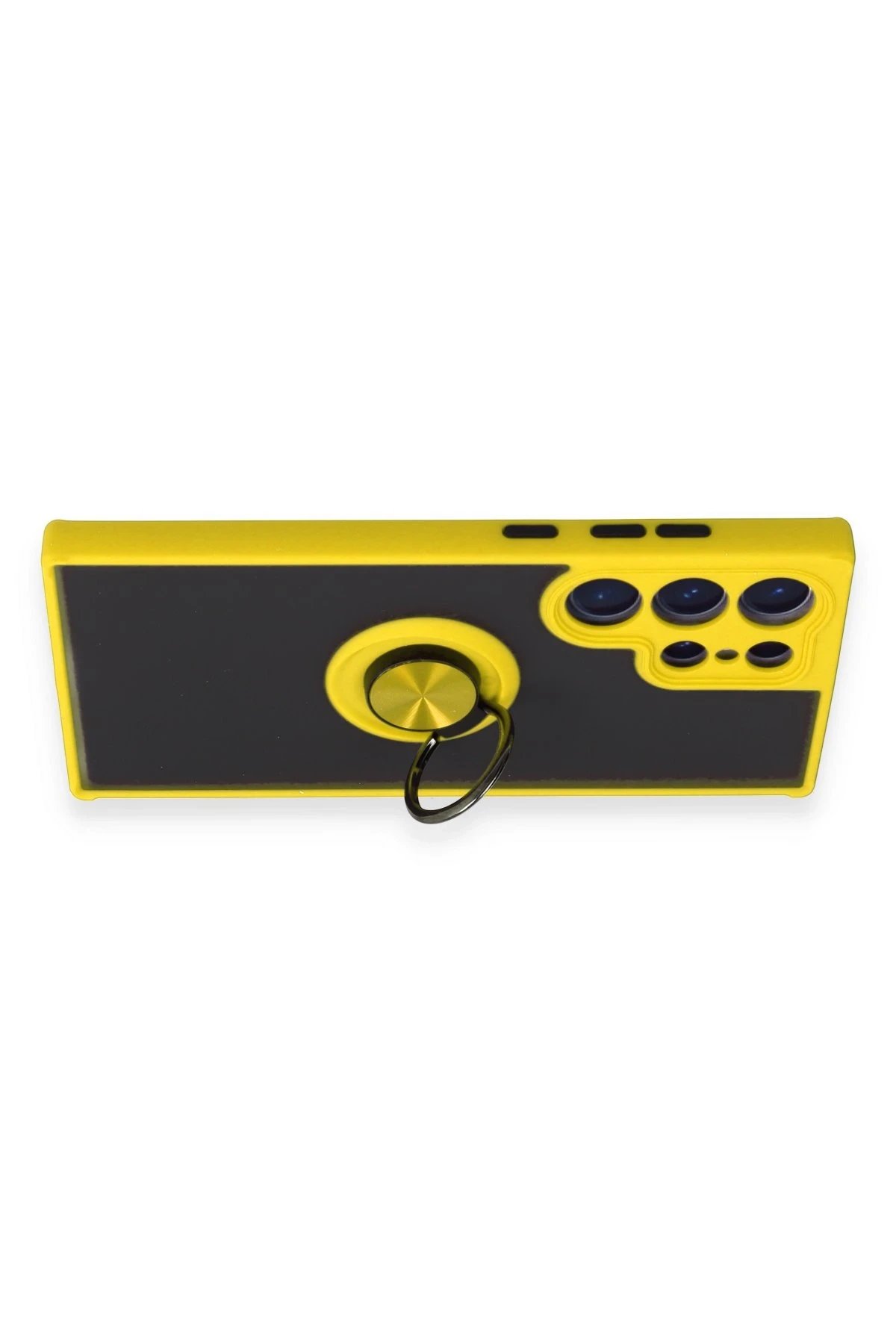 Samsung Galaxy S23 Ultra Kılıf Montreal Yüzüklü Silikon Kapak - Sarı-(5796)