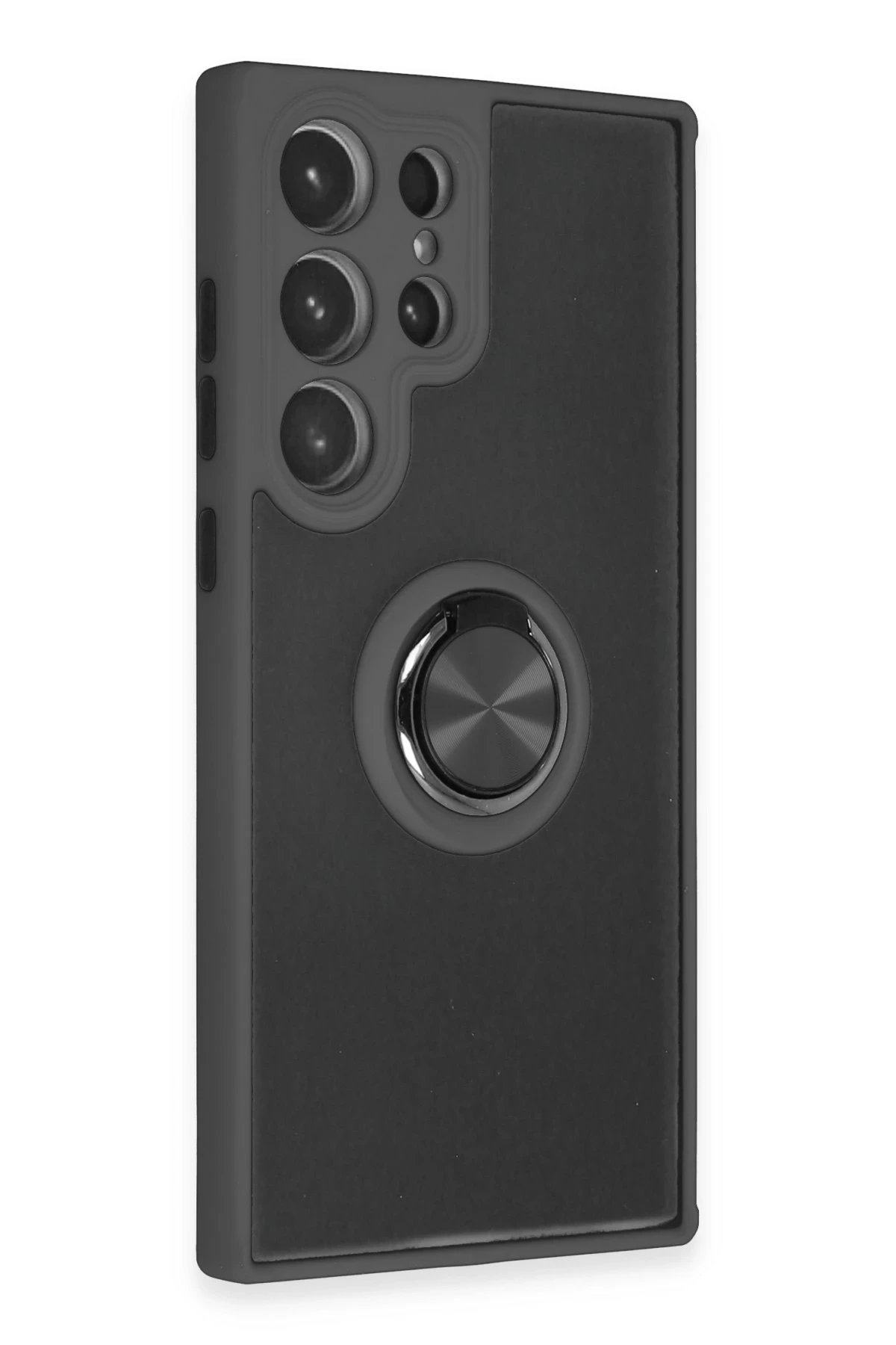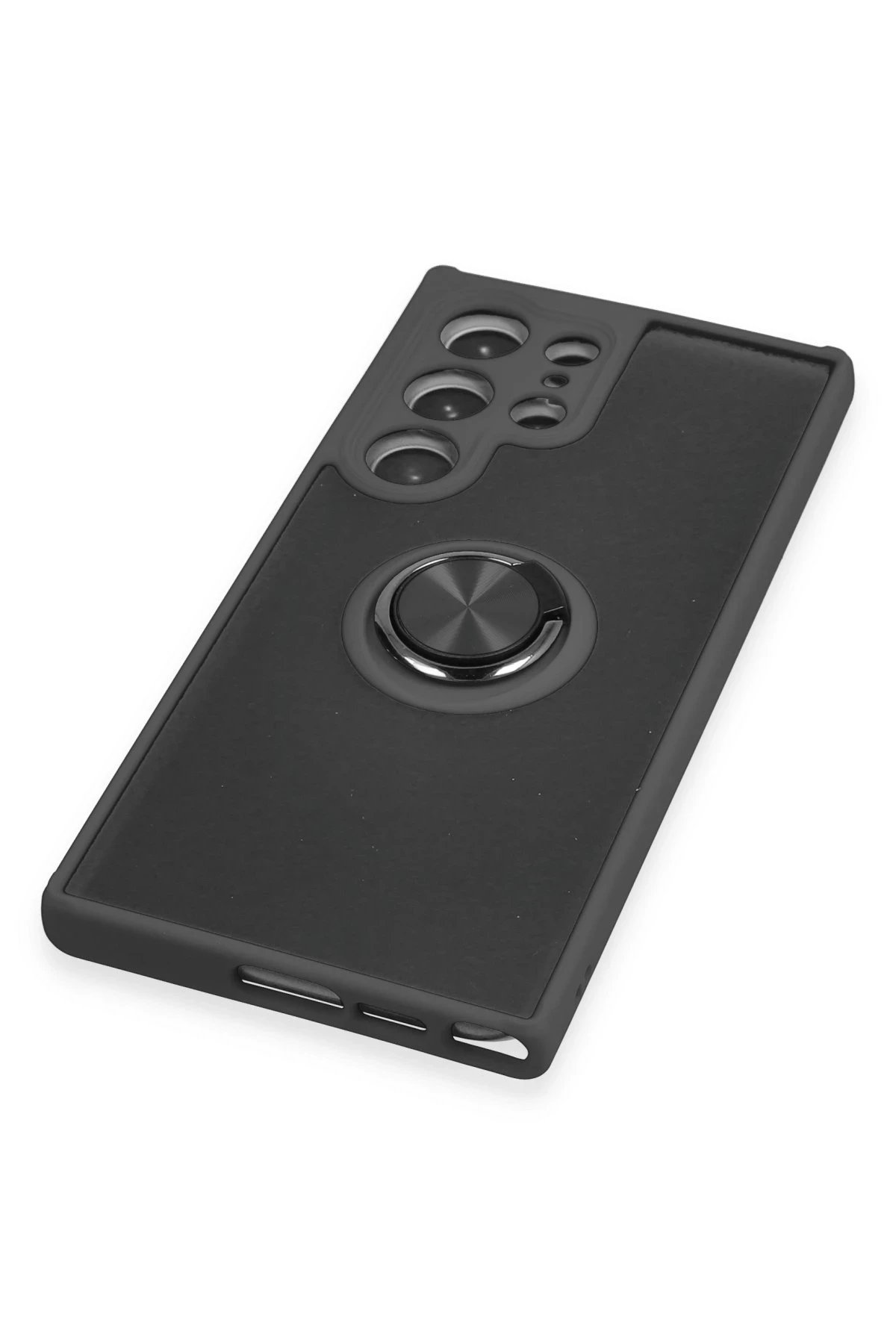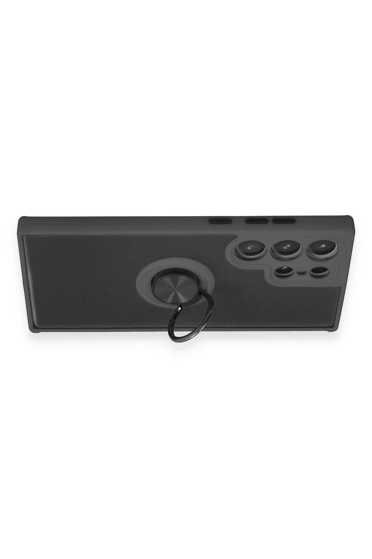 Samsung Galaxy S23 Ultra Kılıf Montreal Yüzüklü Silikon Kapak - Siyah-(5796)