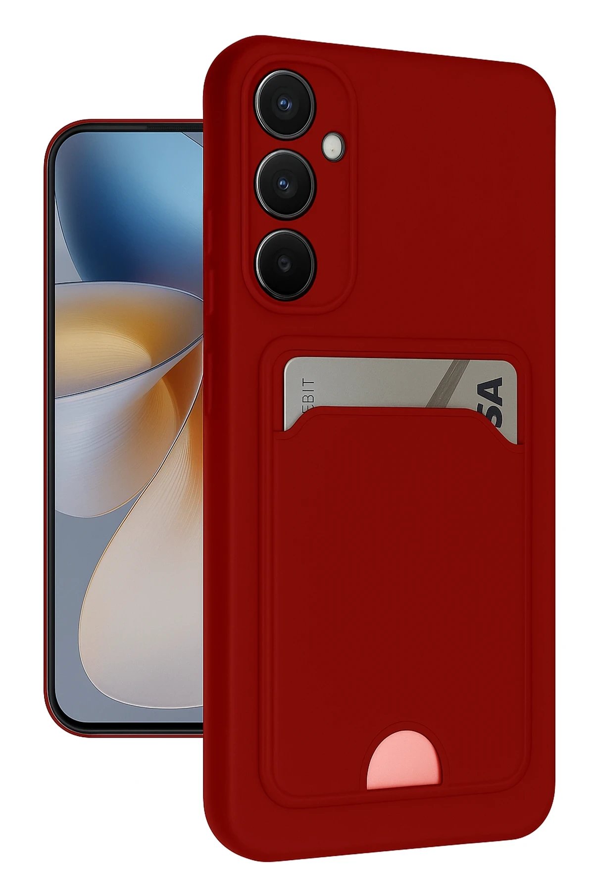 Samsung Galaxy S24 FE Kılıf Kelvin Kartvizitli Silikon - Kırmızı-(5796)