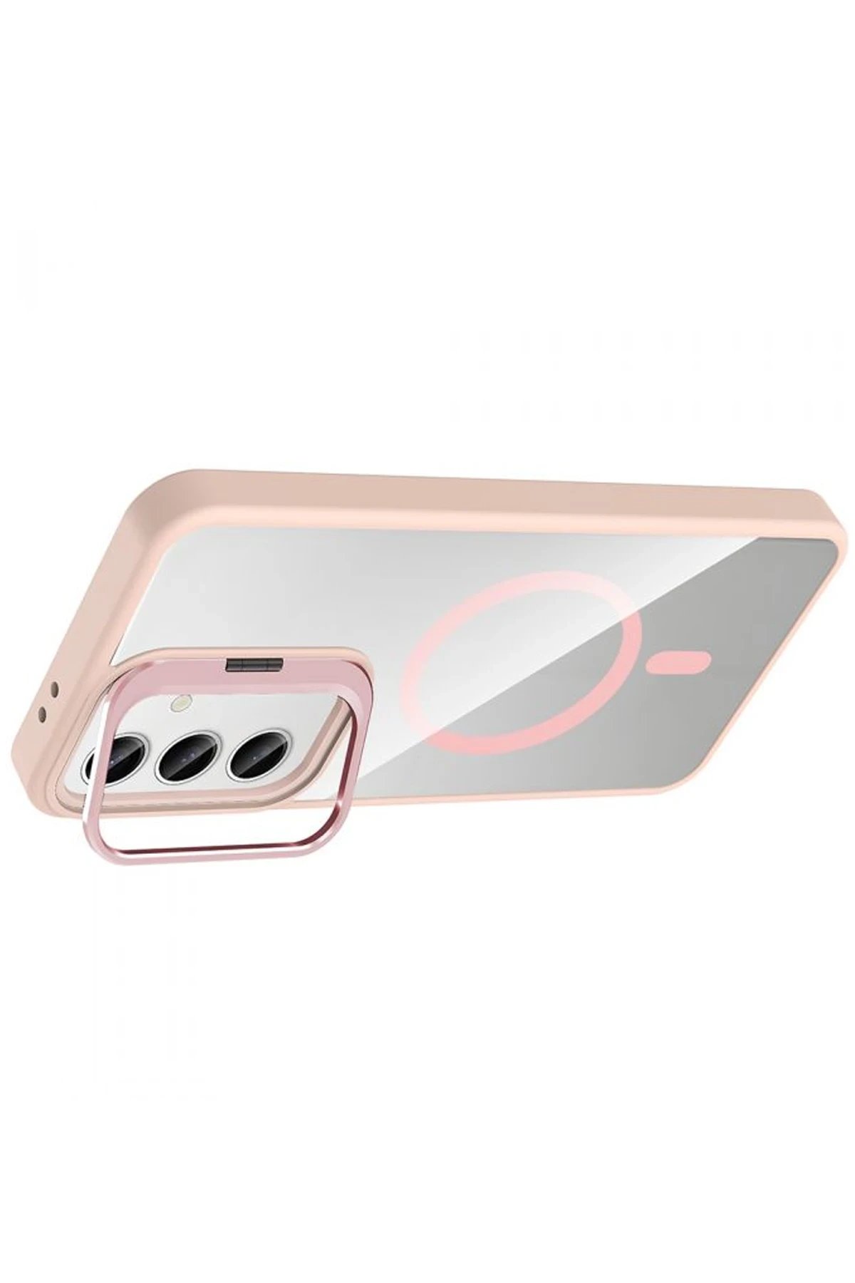 Samsung Galaxy S25 Remim Lensli Magsafe Standlı Kapak - Pembe-(5796)