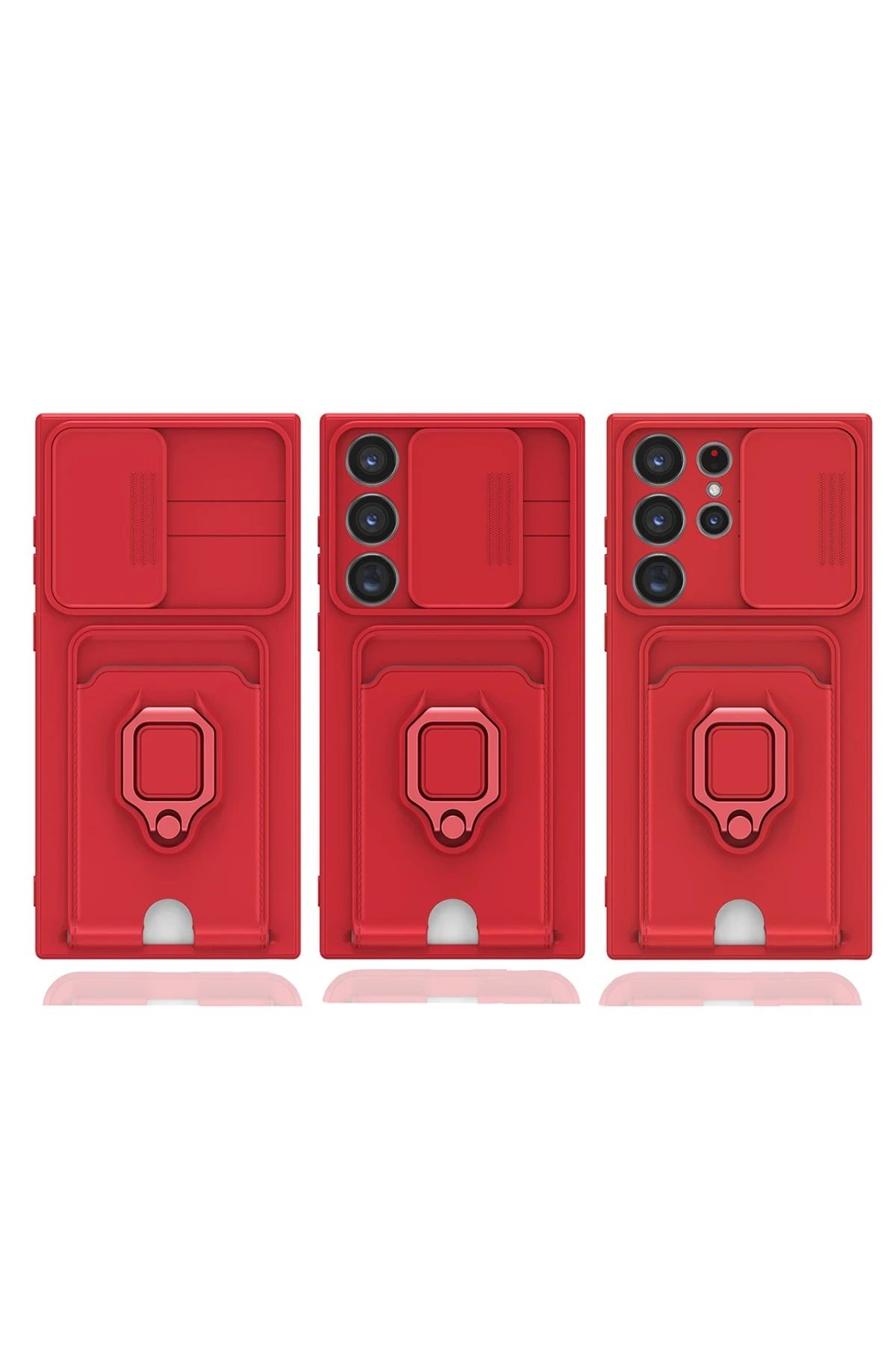Samsung Galaxy S25 Ultra Kılıf Zuma Kartvizitli Yüzüklü Silikon - Kırmızı-(5796)
