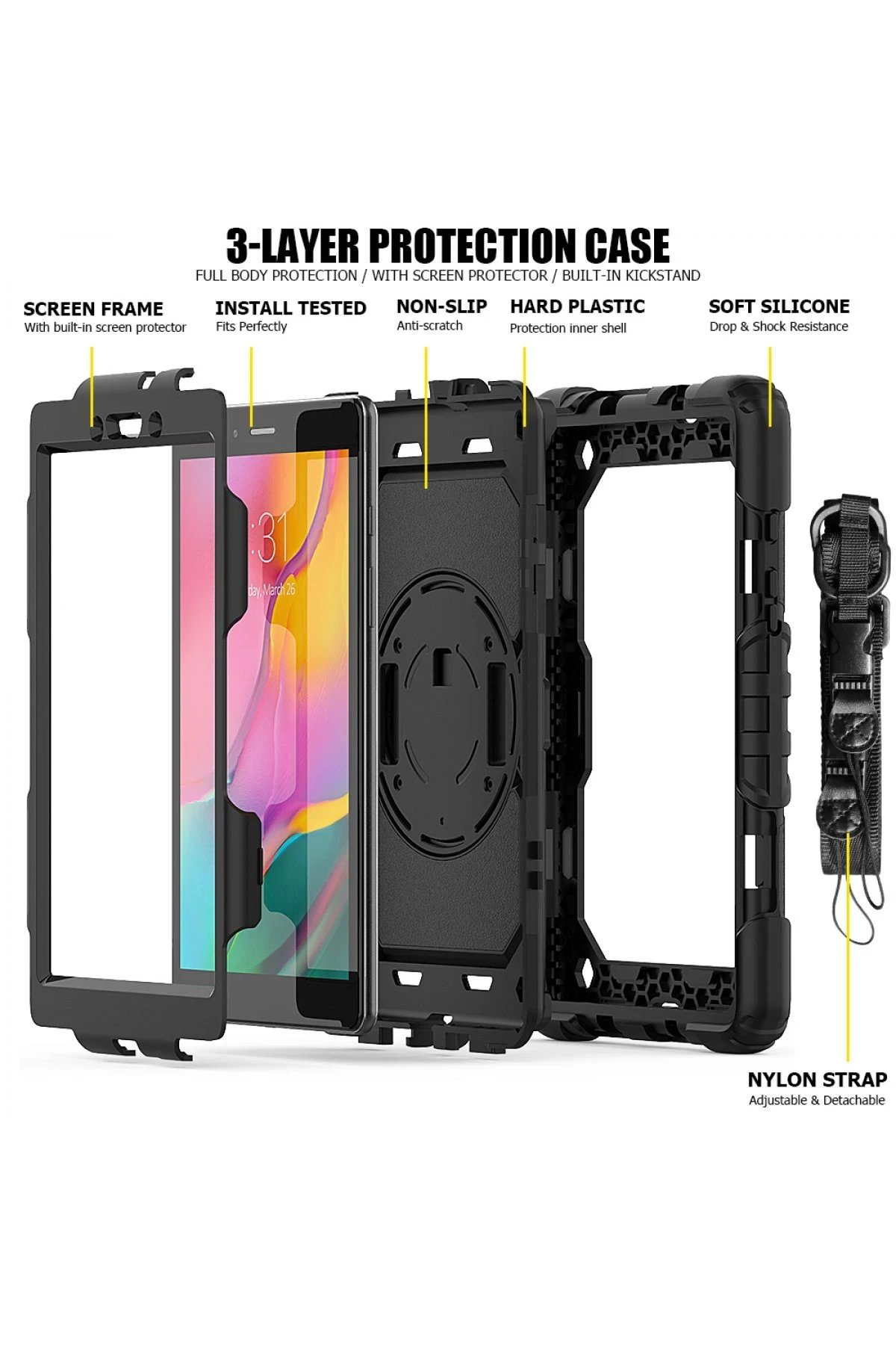 Güçlendirilmiş iç panalleri, ergonomik yapısı ile tabletinizi korumak ve kullanımını kolaylaştırmak için tasarlanmıştır.