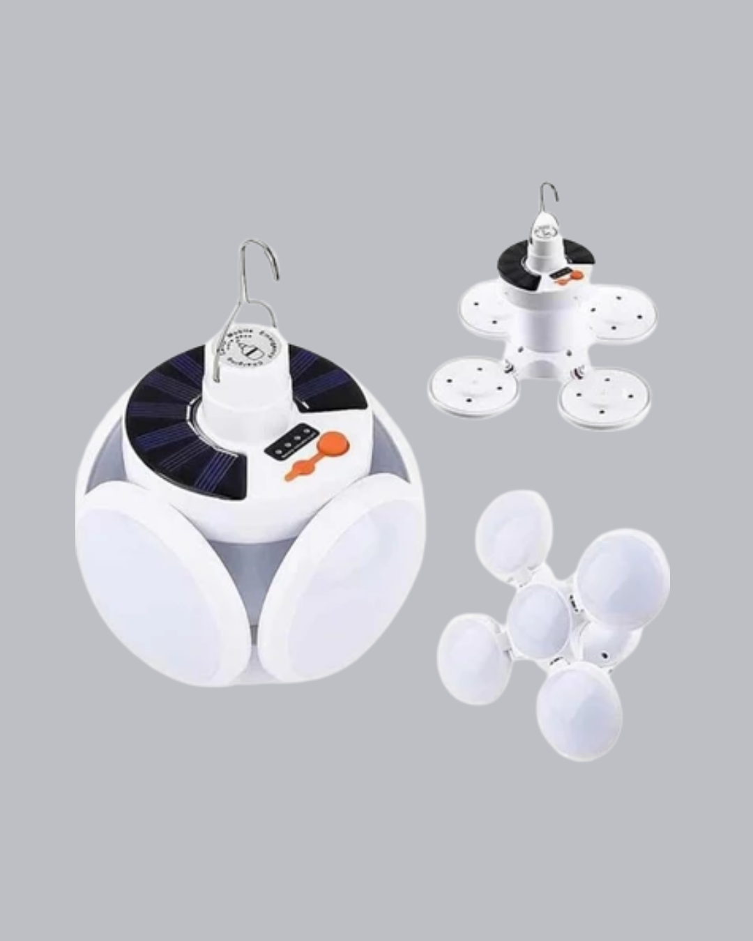 Bu 5 kanatlı solar kamp lambası, hem güneş enerjisiyle hem de USB üzerinden şarj edilebilen çift şarj sistemiyle her ortamda aydınlık sağlar. 45 güçlü LED ışığıyla geniş bir alanı aydınlatır. Katlanabilir tasarımı sayesinde ışık açısını dilediğiniz gibi ayarlayabilir, yönlendirebilirsiniz. 5 farklı ışık modu, ortam ihtiyacınıza göre ayarlanabilir. 2400 mAh lityum pili sayesinde tam şarjla 6-8 saat kesintisiz aydınlatma sunar. 5.5V polikristal güneş paneli sayesinde gün içinde şarj olur; ayrıca kutudan çıkan USB kablosu ile de kolayca şarj edilebilir. IP65 su geçirmezlik özelliği, dış mekanlarda güvenli kullanım sağlar. Bahçe, kamp, karavan, balkon veya acil durumlar için mükemmel bir çözümdür. Asma halkasıyla kolayca taşınabilir ve asılabilir. Enerji verimliliği, dayanıklılığı ve pratik tasarımıyla her evin ve kamp çantasının vazgeçilmezidir.