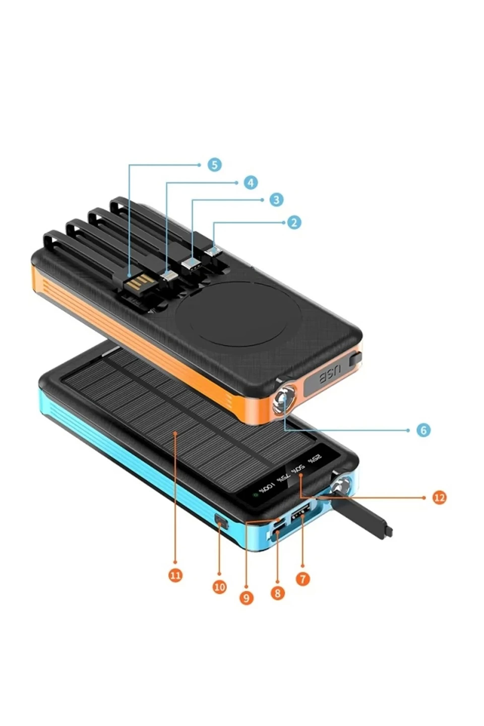 Solar Powerbank 1xusb 10.000mah Lcd Ekran Dahili Usb Mikro Type-c Powerbank
