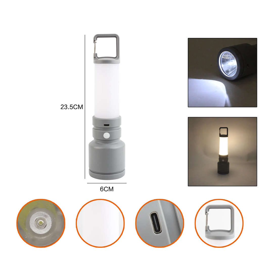 CH-23051, çok yönlü aydınlatma seçenekleri sunan modern bir kamp feneridir. Type-C şarj girişi ve 400mAh bataryası ile uzun süreli kullanım sağlar. 3 Watt Power LED teknolojisi ile düşük güç tüketimi sunarken, 4 farklı aydınlatma modu ile her türlü ihtiyaca cevap verir. 60x235mm kompakt boyutları ve askı aparatı ile çadır içi kullanım için idealdir.