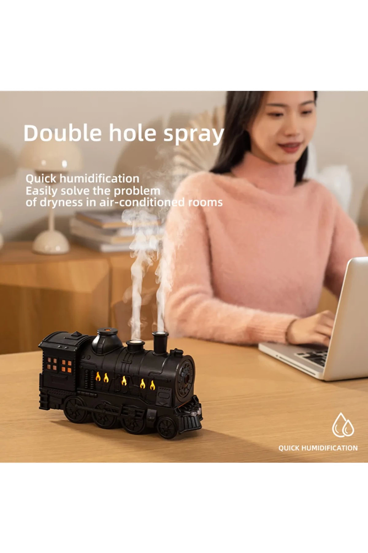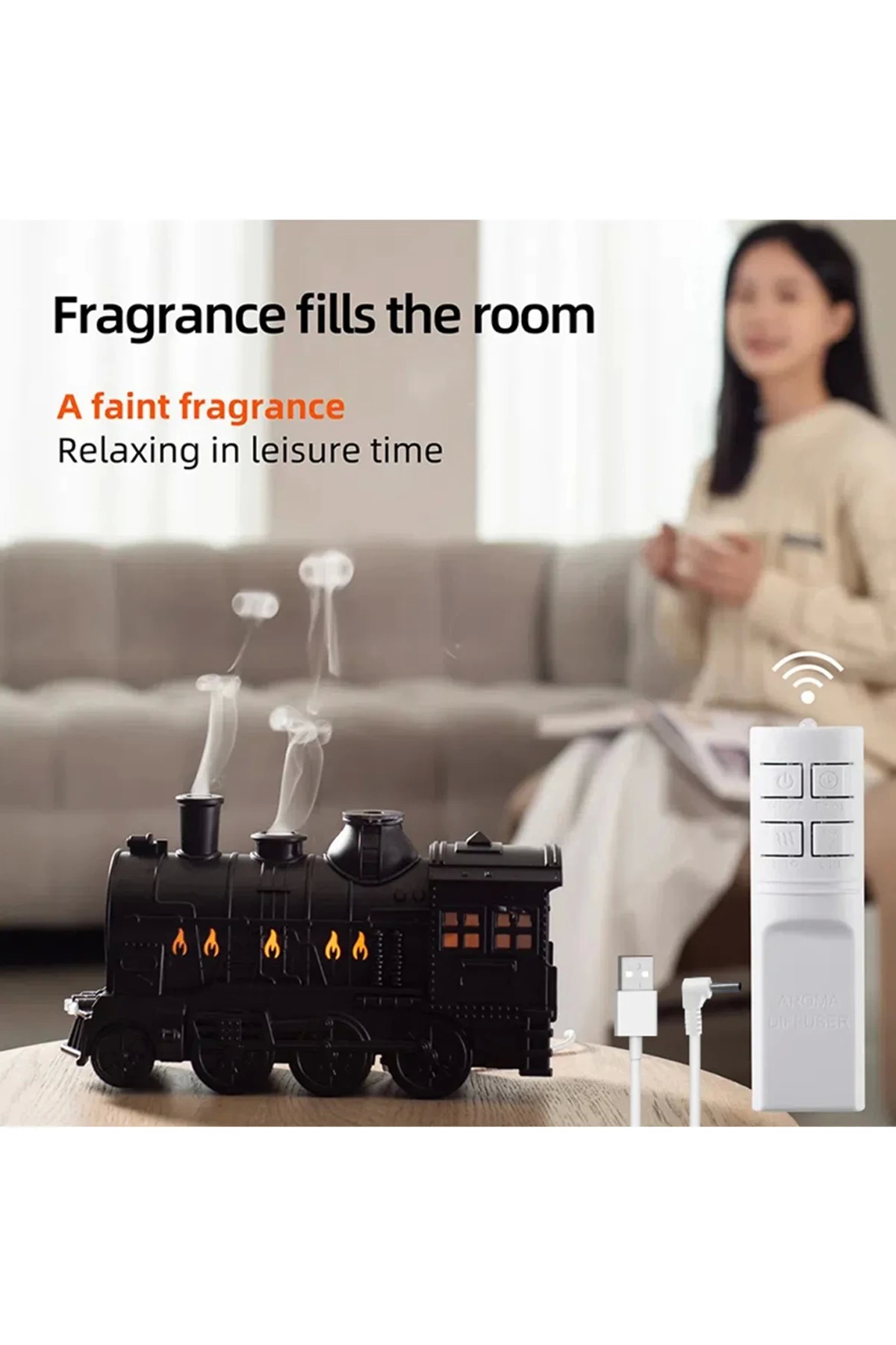 Tren Şeklinde Buharlı Oda Hava Nemlendirici Işık Buhar Makinesi Kumandalı