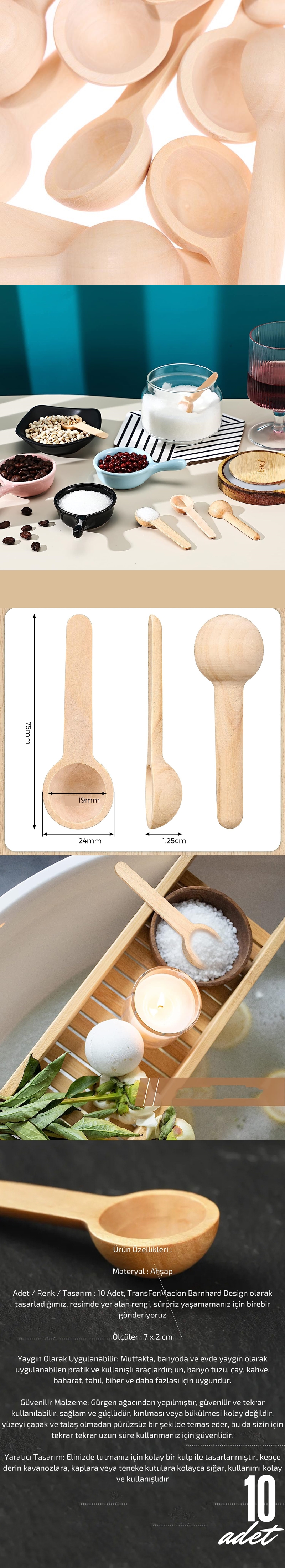 Turk Ahşap Baharat Kaşığı Mini 10 Adet