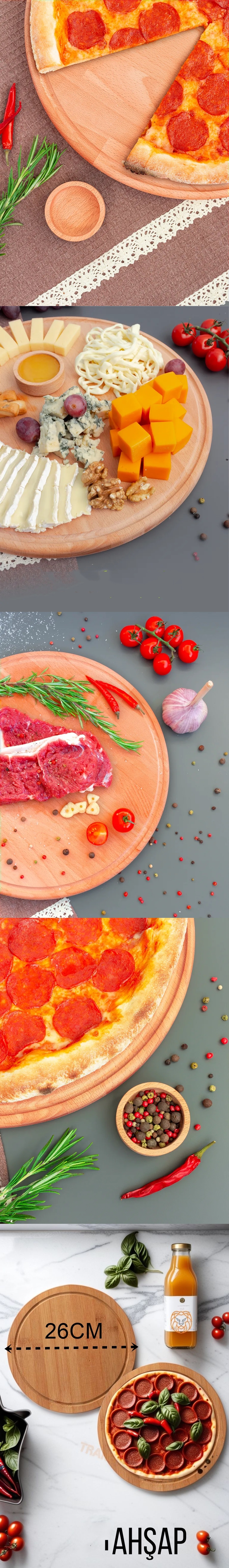 Turk Ahşap Pizza Lahmacun Pide Sunum ve Kesim Tahtası 26 cm 2 ADET