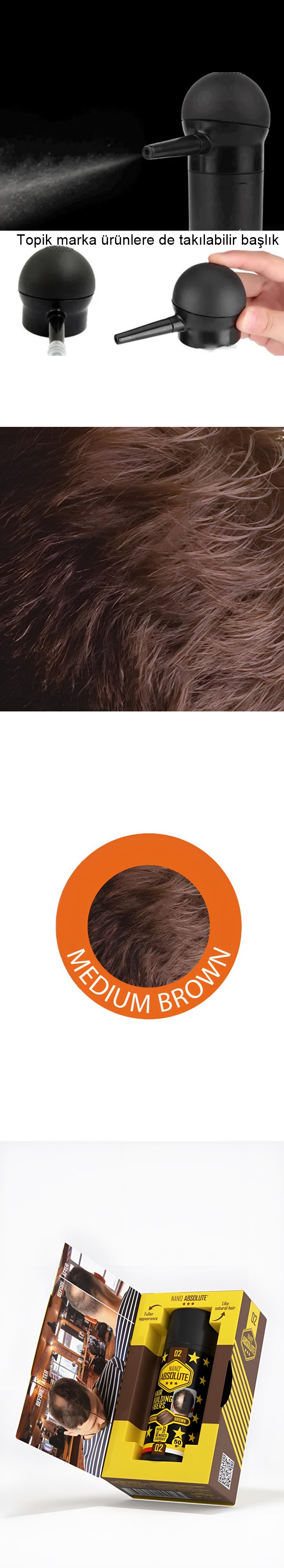 Turk Aplikatörlü Saç Dolgunlaştırıcı Fiber Topik Toz ORTA TON KAHVERENGİ