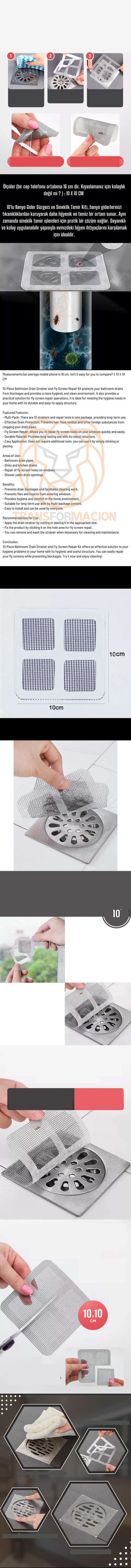 10'lu Banyo Gider Süzgeci ve Sineklik Tamir Kiti, banyo giderlerinizi tıkanıklıklardan koruyarak daha hijyenik ve temiz bir ortam sunar. Aynı zamanda sineklik tamir işlemleri için pratik bir çözüm sağlar. Dayanıklı ve kolay uygulanabilir yapısıyla evinizdeki hijyen ihtiyaçlarını karşılamak için idealdir.