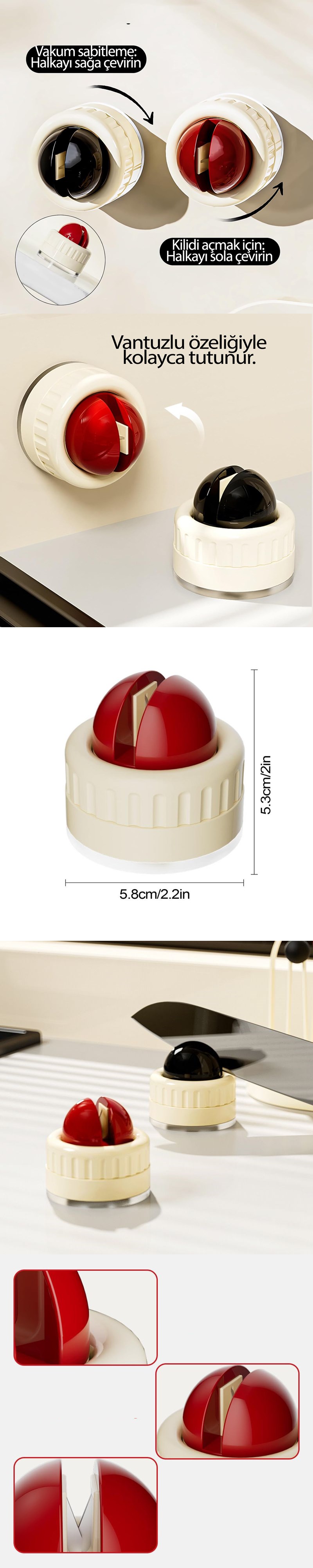 * Vantuzlu Taban: Güçlü vantuz özelliği, bileyiciyi yüzeye sabitleyerek güvenli bir kullanım sağlar.