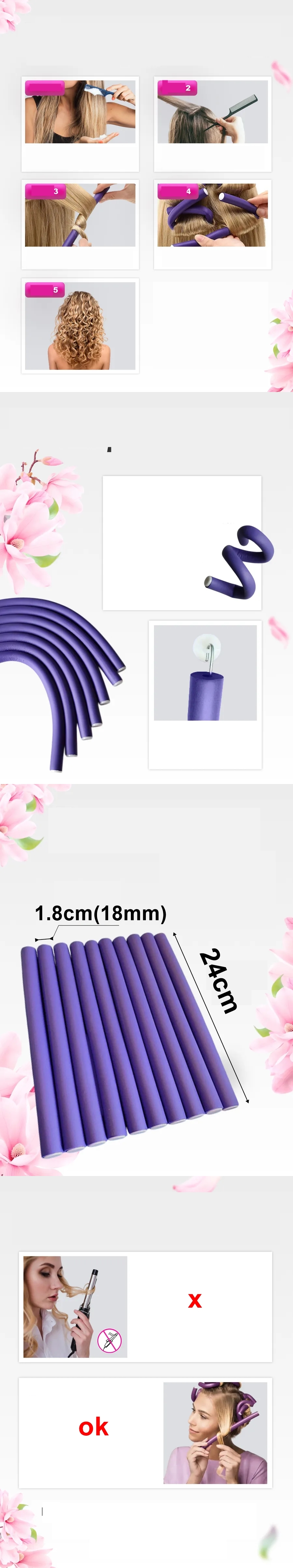 Uzun Saçlar için Esnek Saç Çubukları Isısız ve Saçınıza Zarar Vermez: Bu ısısız kıvırma çubukları, ısısız esnek bigudi bukle maşaları, saç bukle maşası esnek bukle çubukları ısıya dayanıklıdır, saçınızı ısıdan zarar görmeden kıvırabilir ve yumuşak köpük yüzeyi saçınızı kırılmaya karşı koruyabilir . Uzun Saçlar için Bu Bigudiler, ısısız saç bukle maşaları, saç bükme bukle maşaları, saçlar için köpük rulolar, köpüklü saç bukle maşaları, eğer saçlarınız kırılgan veya pürüzlü ve düğümlenmesi kolay ise sizin için iyi bir seçim olacaktır.