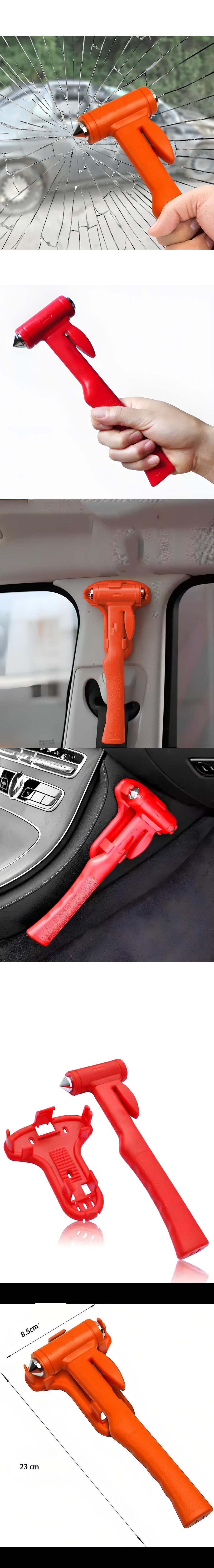 Cam Kırma: Çekiç kısmındaki sivri metal ucu camın kenarına vurarak camı anında kırabilirsiniz. Kırılan cam dışarı doğru patlayarak size zarar vermez.