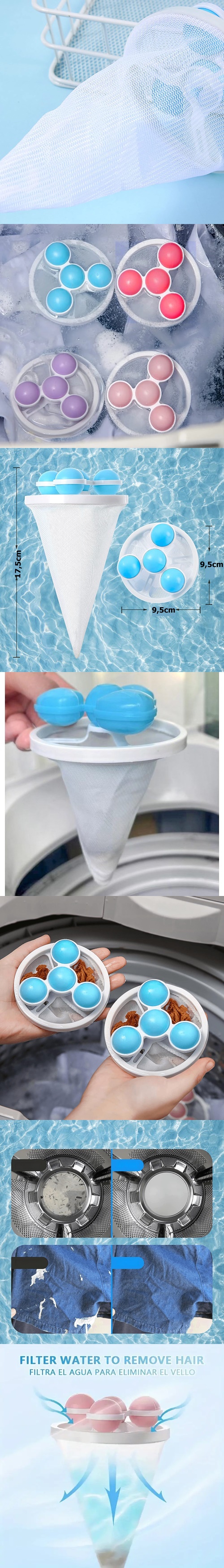 Kullanımı kolay: Sadece saç filtresi ağını kıyafetlerin üzerine koymanız, ardından yıkamak için çamaşır makinesini açmanız ve ardından çamaşır makinesinin temizliği bitene kadar beklemeniz ve çamaşır topunu çıkarmanız ve içinde saklanan küçük şeyleri çıkarmanız yeterlidir.