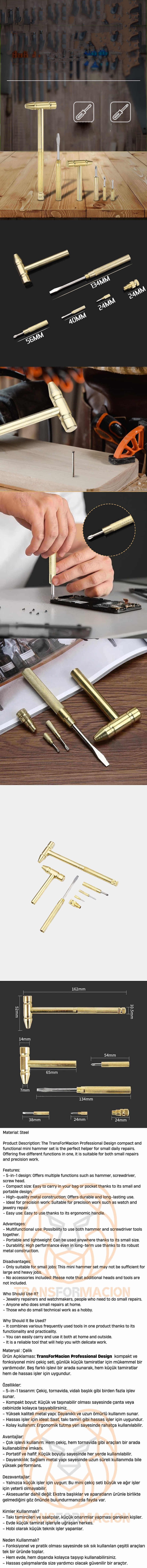 Ürün Açıklaması: Turk Professional Design  kompakt ve fonksiyonel mini çekiç seti, günlük küçük tamiratlar için mükemmel bir yardımcıdır. Beş farklı işlevi bir arada sunarak, hem küçük tamiratlar hem de hassas işler için uygundur.