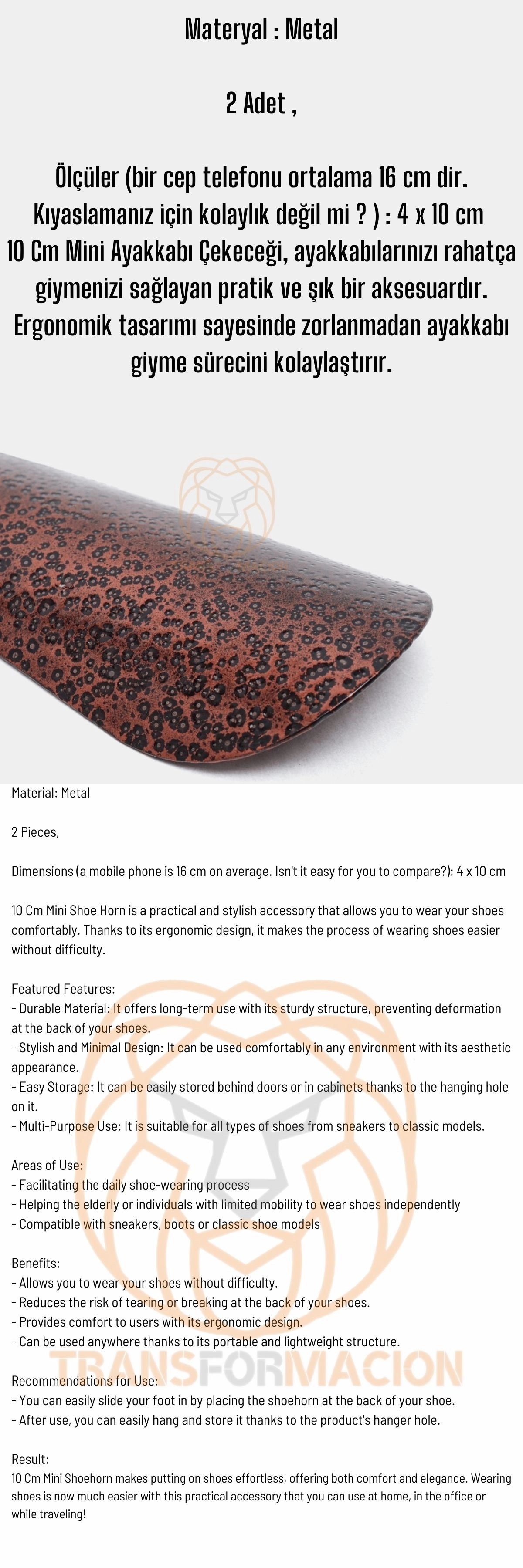 10 Cm Mini Ayakkabı Çekeceği, ayakkabılarınızı rahatça giymenizi sağlayan pratik ve şık bir aksesuardır. Ergonomik tasarımı sayesinde  zorlanmadan ayakkabı giyme sürecini kolaylaştırır.