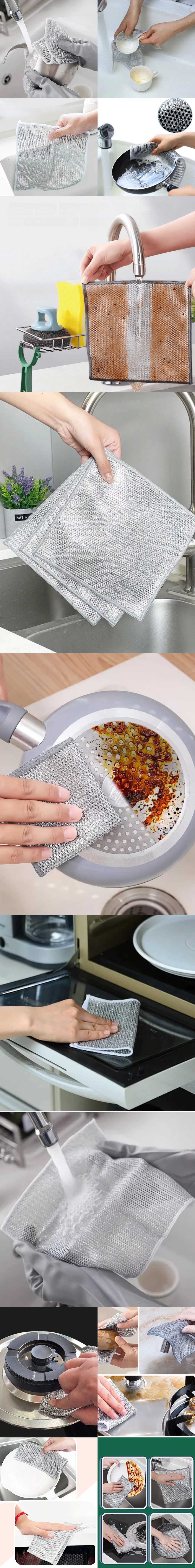 Yaygın Çok Amaçlı Tel Bulaşık Bezi dayanıklı ve yeniden kullanılabilir ve mutfak gereçleri, arabalar, elektronikler, gözlükler, mücevherler, paslanmaz çelik, aletleri vb. Silmek için idealdirir. Verimli performansı tam da ihtiyaçlarınızı karşılayacaktır.