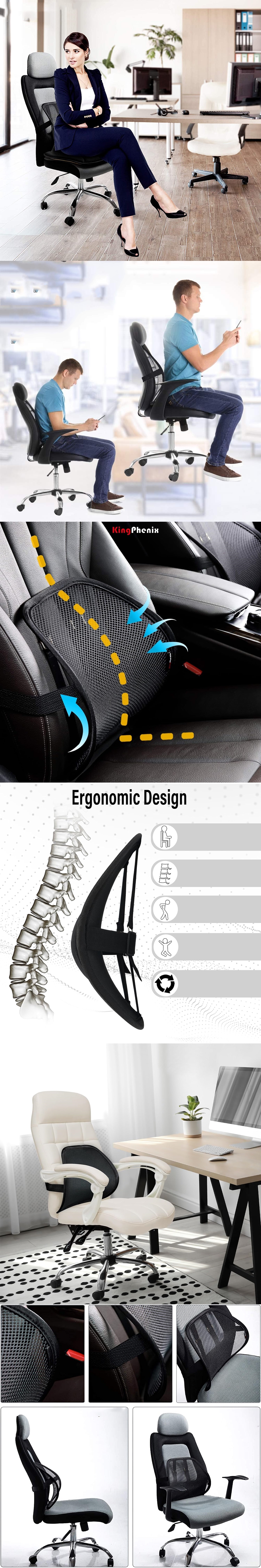 Ergonomik Tasarım : Sandalye desteği, oturma duruşunuzu düzeltmenize yardımcı olacak ergonomik tasarımı benimser, sırt kasınızın rahatlamasına izin verir. Sandalye için bel desteği yastığıyla karşılaştırıldığında file bel desteğimizin alınması ve çıkarılması kolaydır.