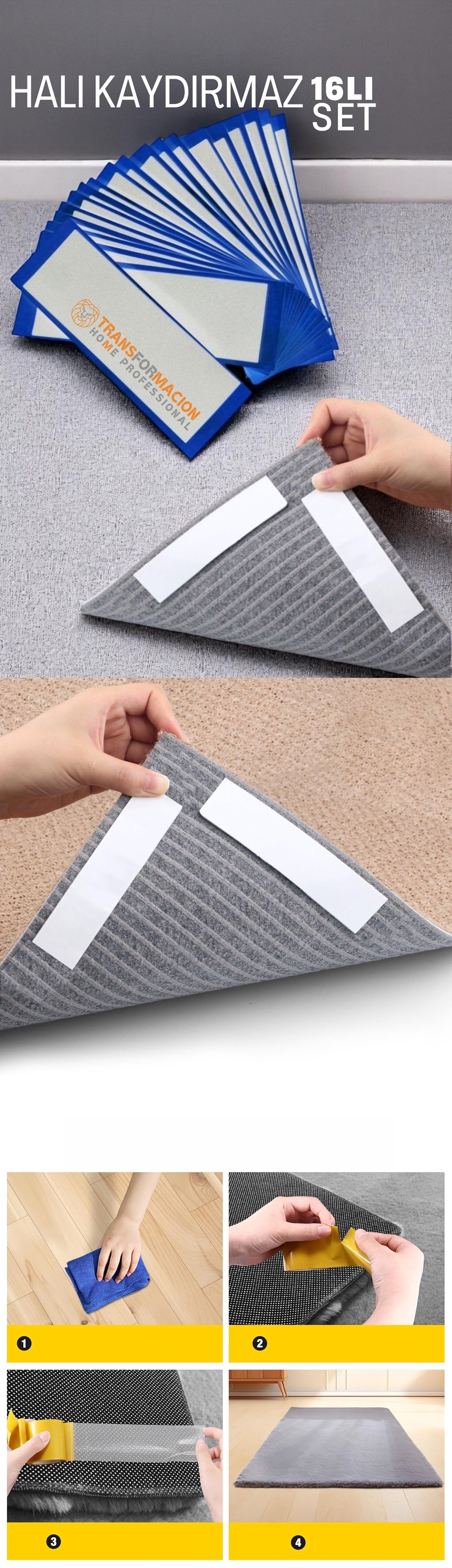 Turk Halı Kaydırmaz - Halı Kilim Yolluk Kayma Önleyici Yapışkan 16 lı SET