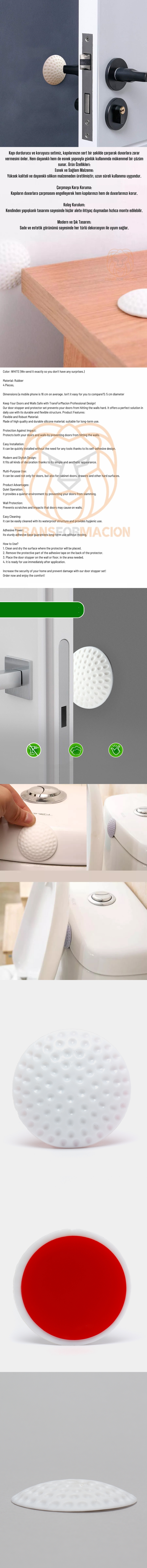 Kapı durdurucu ve koruyucu setimiz, kapılarınızın sert bir şekilde çarparak duvarlara zarar vermesini önler. Hem dayanıklı hem de esnek yapısıyla günlük kullanımda mükemmel bir çözüm sunar. Ürün Özellikleri: