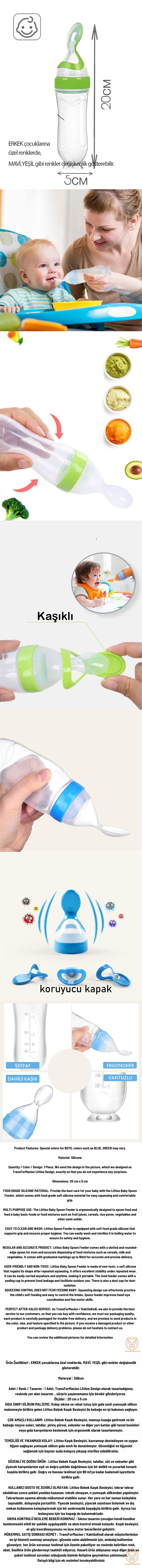 TEMİZLİĞİ VE YIKANMASI KOLAY: Littloo Kaşık Besleyici, kavramayı destekleyen ve uygun hijyen sağlayan yumuşak silikon gıda sınıfı ile donatılmıştır. Güvenliğini ve hijyenini sağlamak için kaynar suda kolayca yıkayıp sterilize edebilirsiniz.