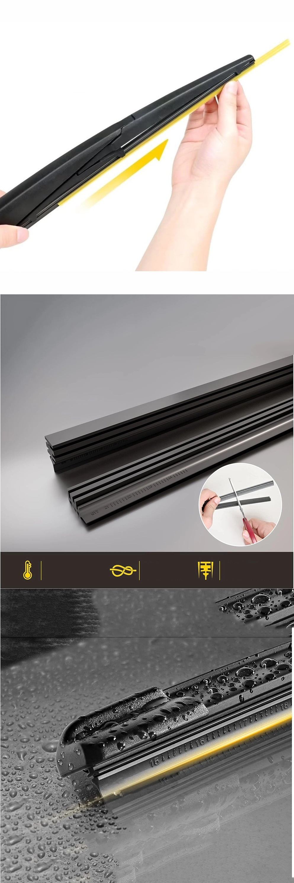 Daha Sessiz ve Daha Temiz: Esnek Doğal kauçuklu silecek lastiği yedeği, sessiz, pürüzsüz, neredeyse iz bırakmayan bir silme için ön cama mükemmel uyum sağlar.