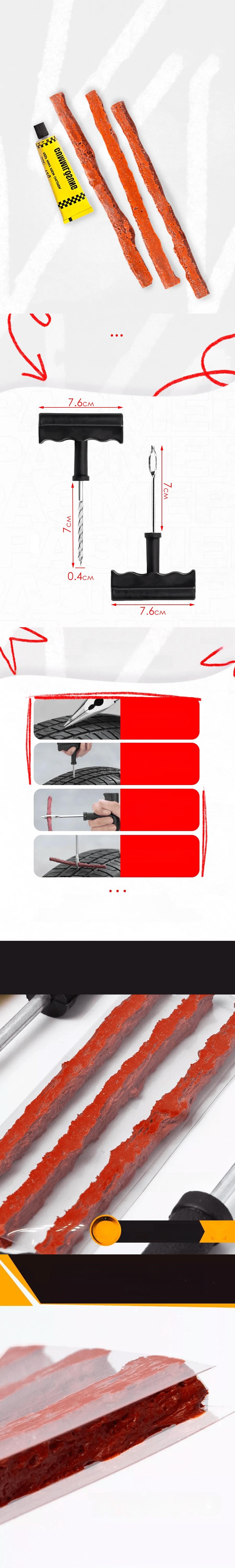 Ürün Özellikleri Bu lastik tamir kiti, yolda karşılaşılan lastik delinmelerine hızlı bir çözüm sunar ve dayanıklı malzemelerle uzun ömürlü kullanım sağlar.