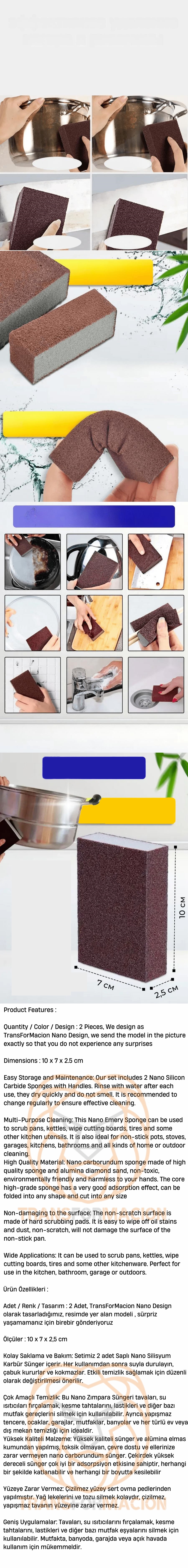 Kolay Saklama ve Bakım: Setimiz 2 adet Saplı Nano Silisyum Karbür Sünger içerir. Her kullanımdan sonra suyla durulayın, çabuk kururlar ve kokmazlar. Etkili temizlik sağlamak için düzenli olarak değiştirilmesi önerilir.