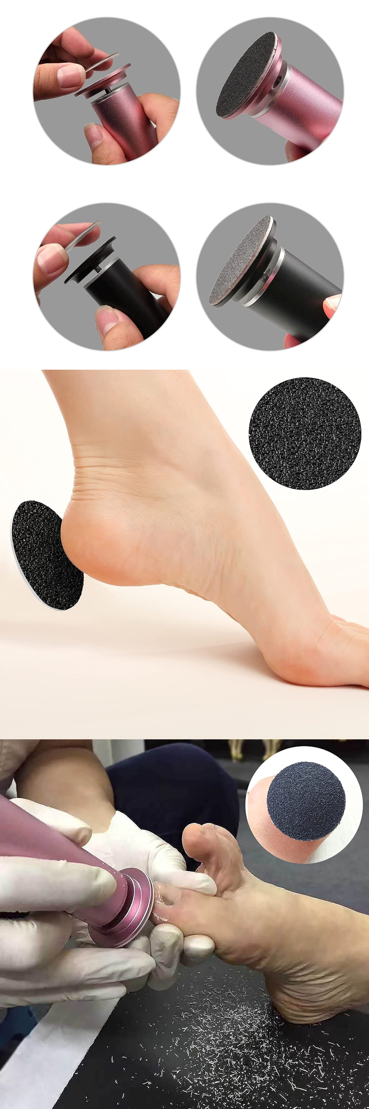 Boyut ayrıntıları: her ayak törpüsü değiştirme pedinin çapı 2.3 cm’dir.; kompakt, hafif ve taşınabilir, dışarıdayken çantanızda taşıması veya saklaması kolaydır, size çok fazla kolaylık sunar; Ve bu makul boyut, kullanım sırasında daha güvenilir olan elektrikli ayak dosyaları için geçerlidir.