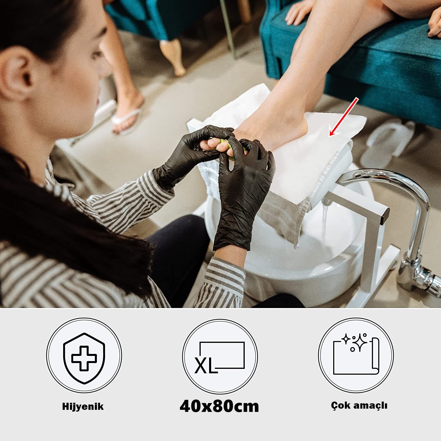 TEK KULLANIMLIK HİJYENİK TASARIM : Manikür/Pedikür/Tırnak havlusu tek kullanımlık bir tasarımdır ve kullanımı kolaydır. Ellerinizi rahat bir HAVLU alanına koyun, ellerinizi temiz tutun. Manikürcüler veya kişisel manikür masa örtüleri için çok uygundur, rahat ve uygun bir ölçüye sahiptir.